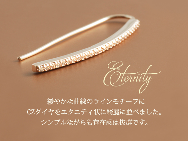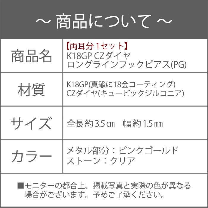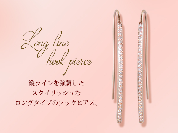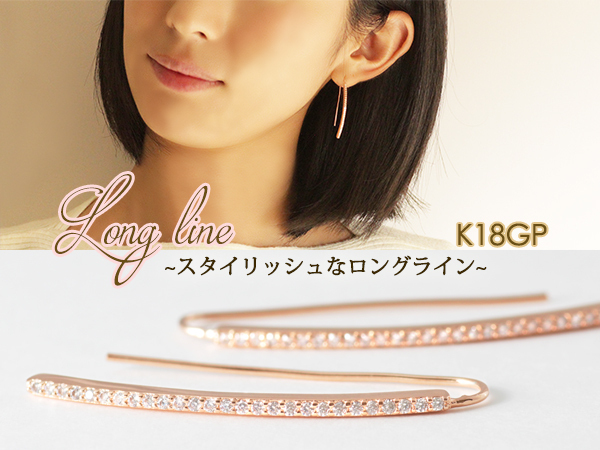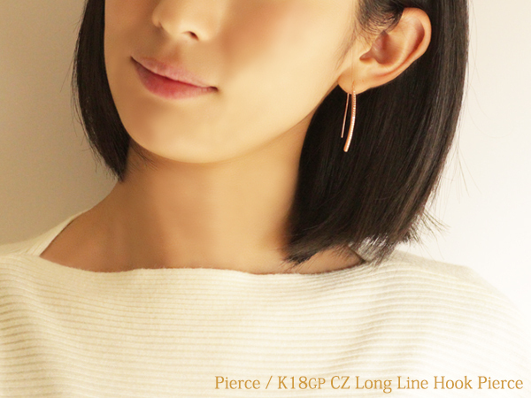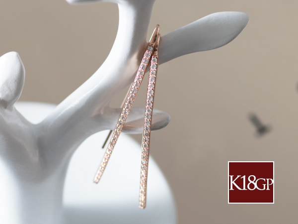 ピアス レディース ロング フック ピンクゴールド 18金 18kコーティング シンプル 長い 上品 / K18GP CZダイヤ ロングラインフックピアス