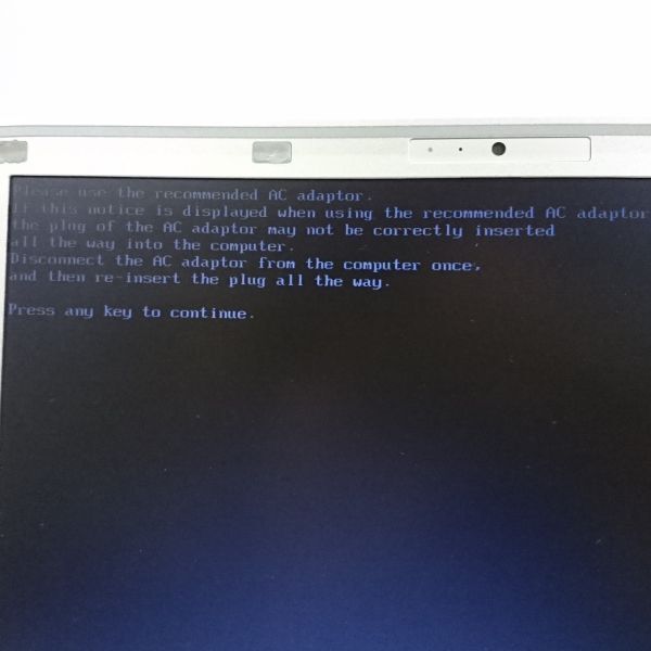 ※ACアダプターの規格違いで、起動時に表示が出ます。