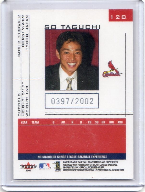 | ★☆田口壮 カード Vol.106 2002FLEER GENUINE UPSIDE #128 限定 ルーキー☆★ | |
