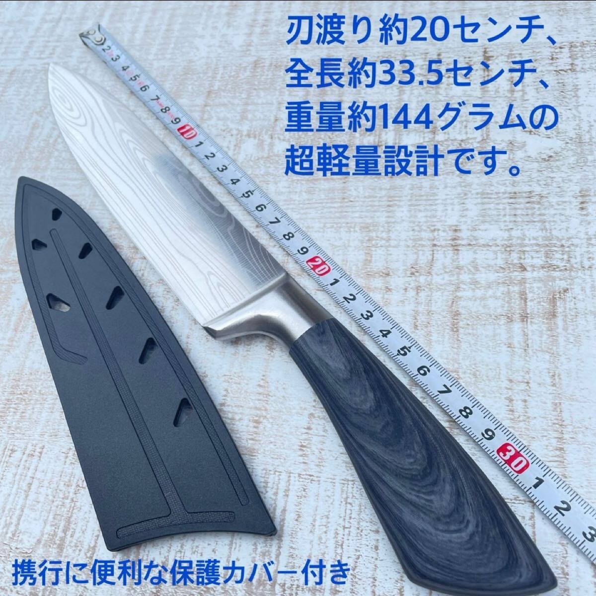 長さ33.5センチ、刃渡り20センチ、重量は約144gで大きすぎず小さすぎず、重すぎず軽すぎずちょうど良いサイズです。
