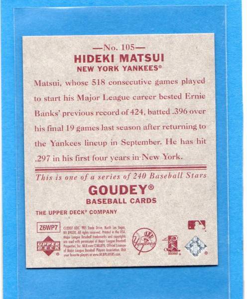 | ★☆松井秀喜 カード Vol.137 2007UD GOUDEY #105 RED BACKS☆★ | |