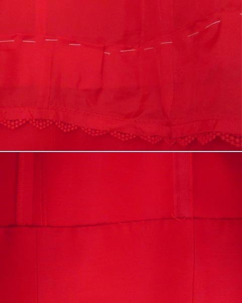 | コンディション | スカート表地、裏地共に裾上げ(手縫い)あり 裏地ファスナー横や胸元に汚れ、アームホールに薄汚れ |