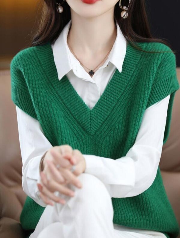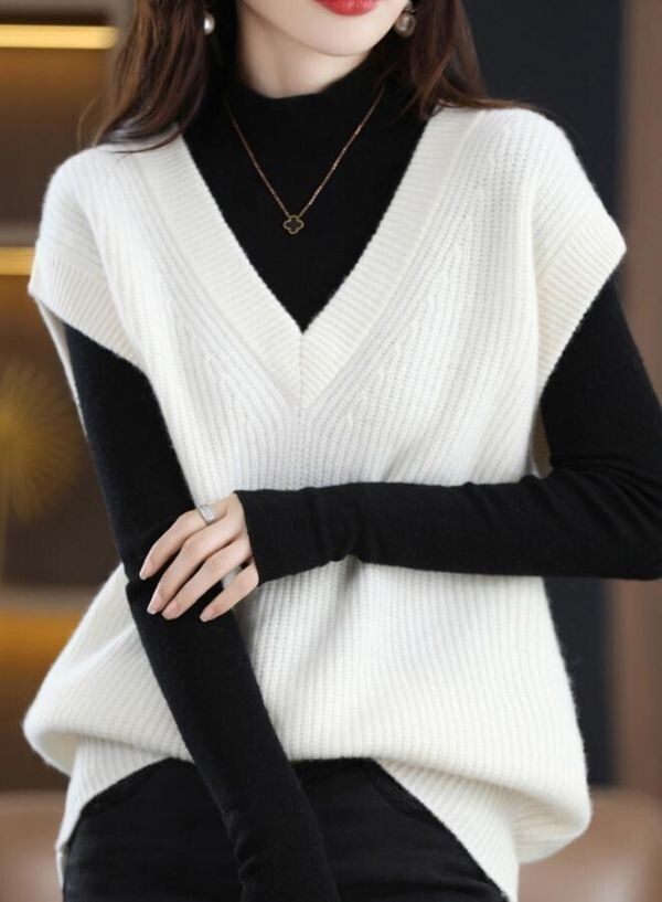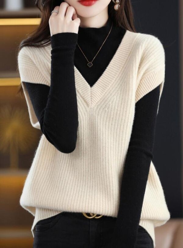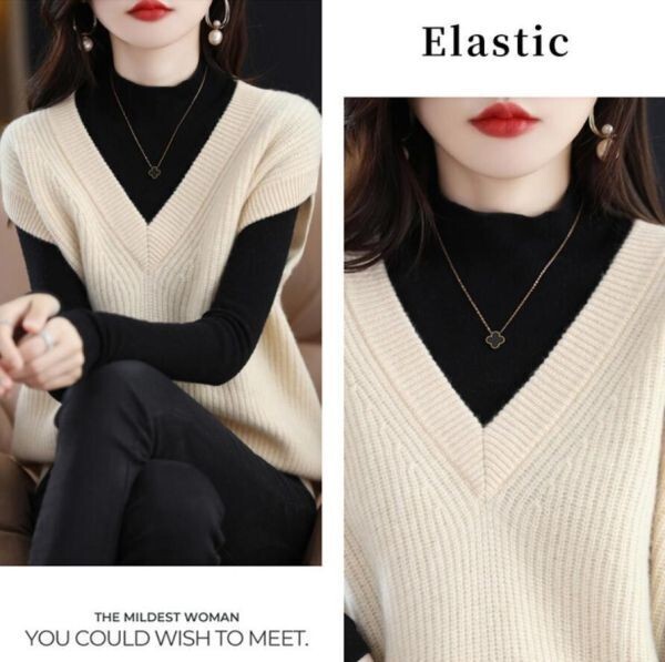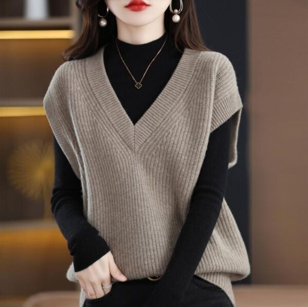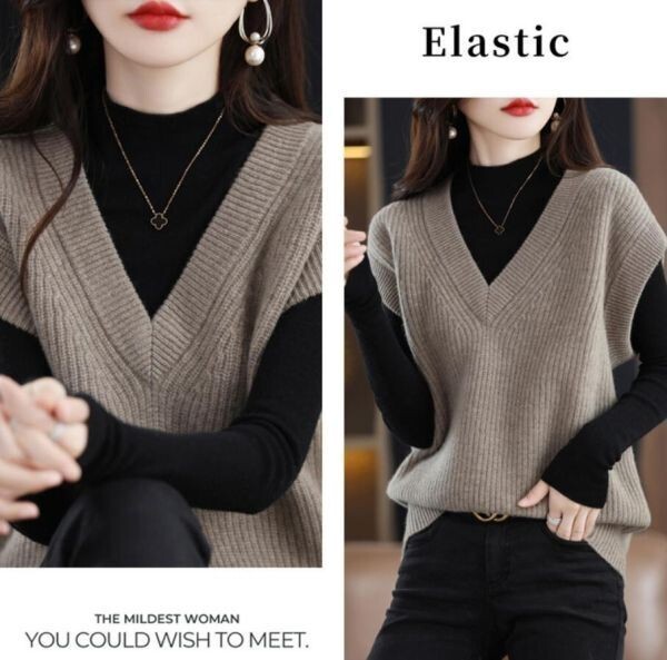秋 冬 秋冬 上質 おしゃれ Vネック 袖なし ニットベスト カシミヤ混 ニットセーター 大人女子キャメル