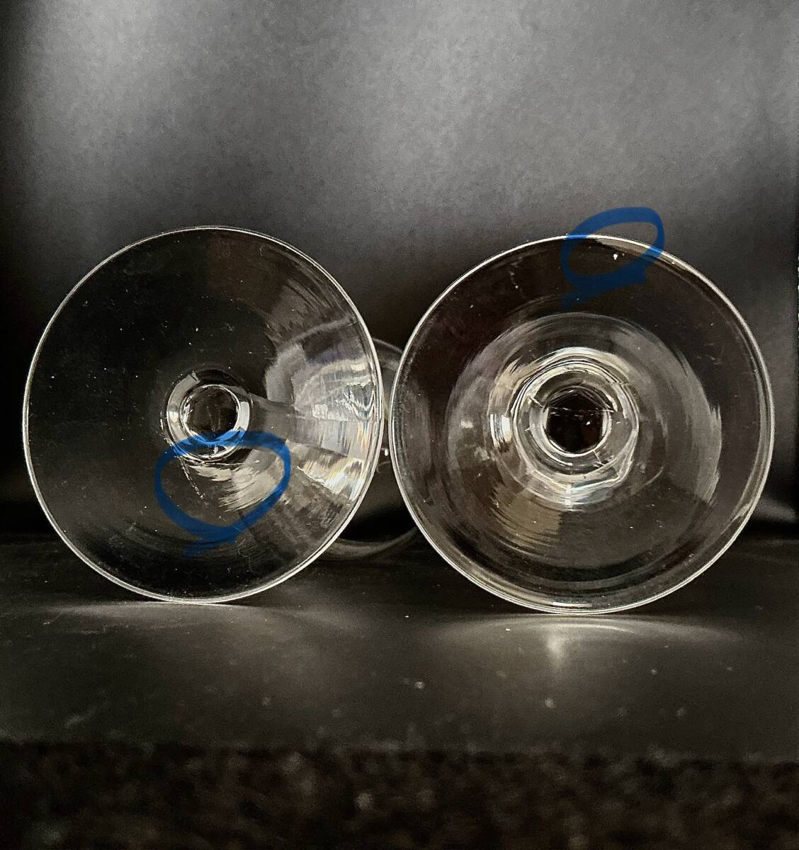 現行品のバカラのグラスに比べ*希少で付加価値がある*アンティーク・ヴィンテージ品は、アシッド エッチングによる模様のずれ、薬品によるちょっとした汚れ、製造段階で現れた気泡、グラスのフット裏側をカットした時にできたカット跡の切り離し痕などの窯キズが度々見られますが、それらはアンティークヴィンテージグラス特有のもので、カケ、キズではなく、また二級品ではありませんのでアンティークヴィンテージ品をご理解ください。