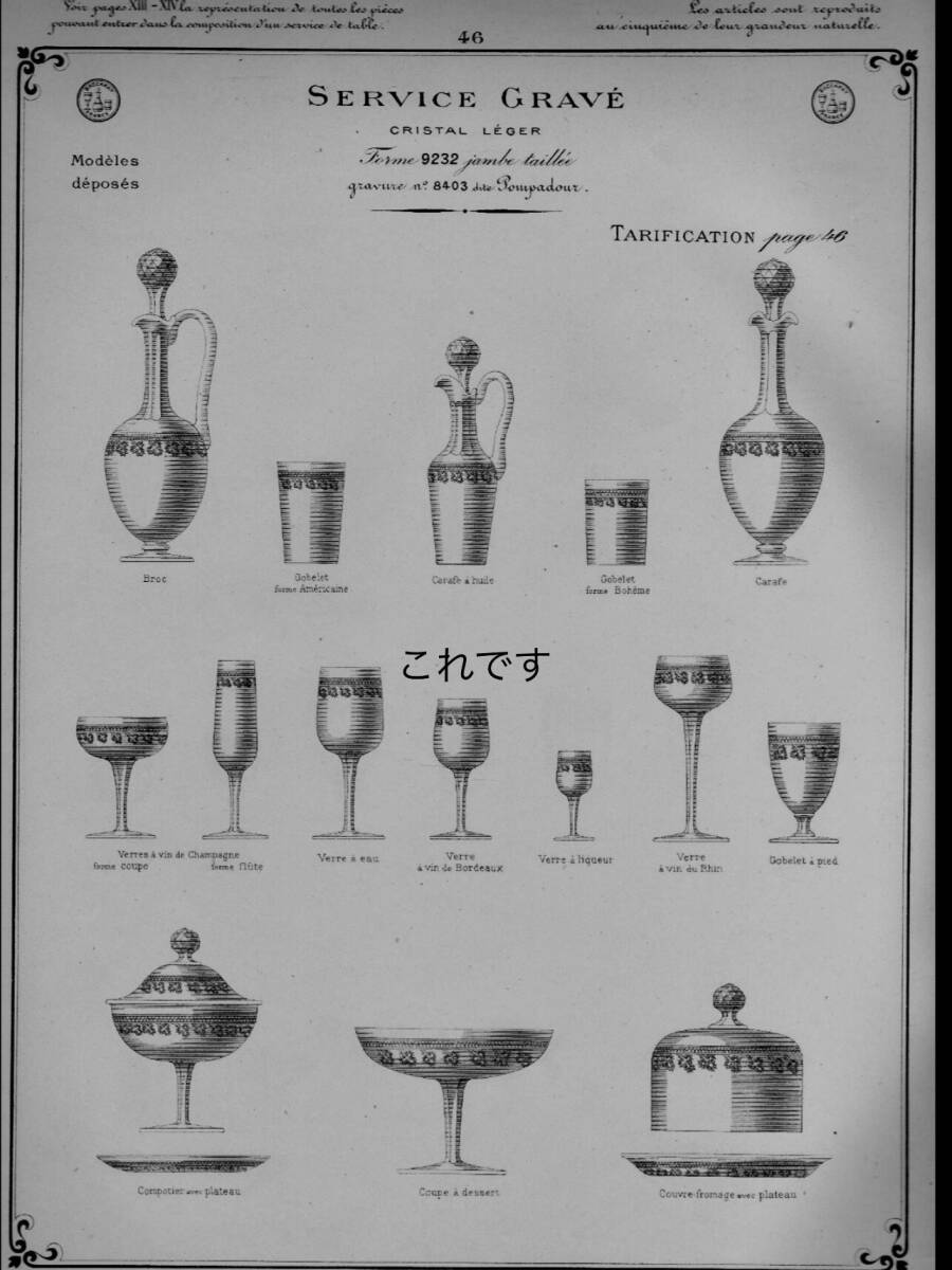 1936年以前(1900年初期)の製造ですのでバカラのマークはありませんが、ポンパドールが記載されているバカラのカタログ(エディション 1916年ページ12)画像9を載せましたのでご確認下さい。