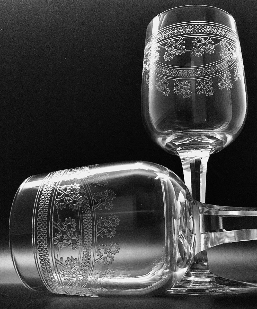 アシッド エッチングで可愛いらしい花が繊細にグラヴィールされた上品なグラスです。