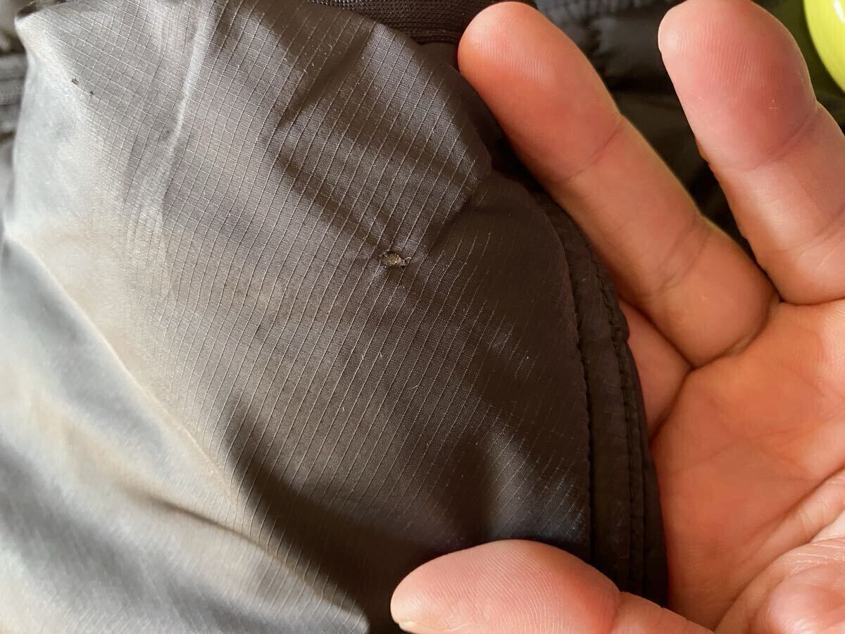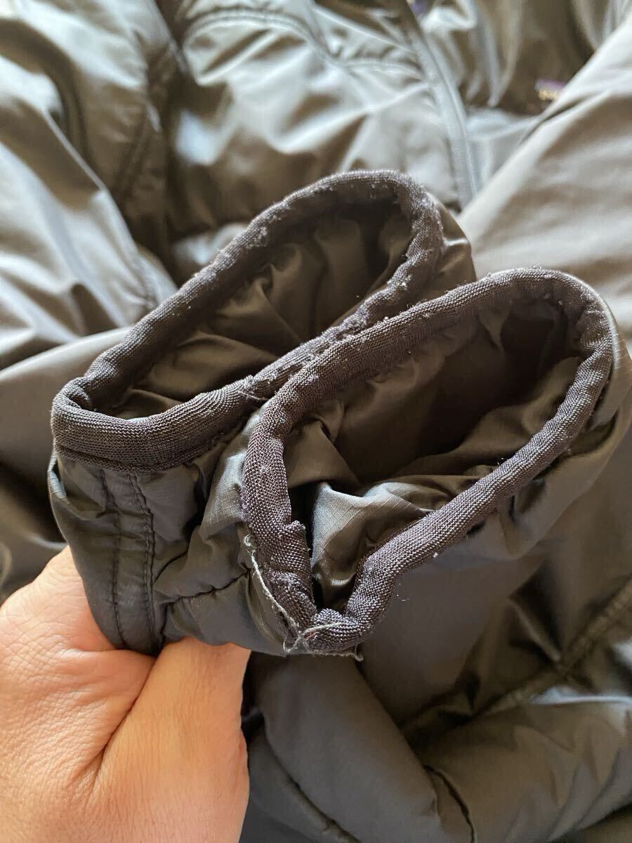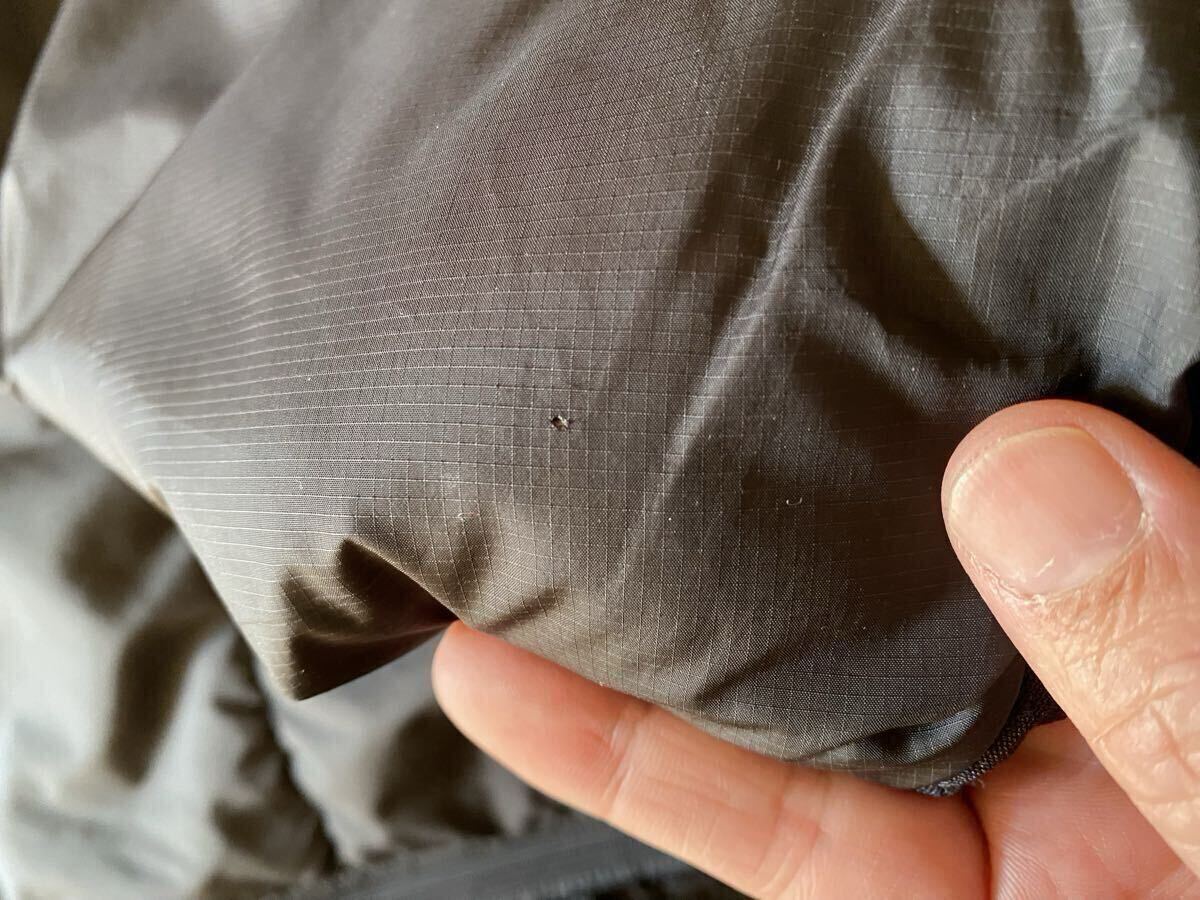 インナー部分に破れはありませんが、ナイロン部分には、ピンホール(着用すると左小指側)とひっ掻き傷(右袖小指側)が見られます。写真で確認して下さい。