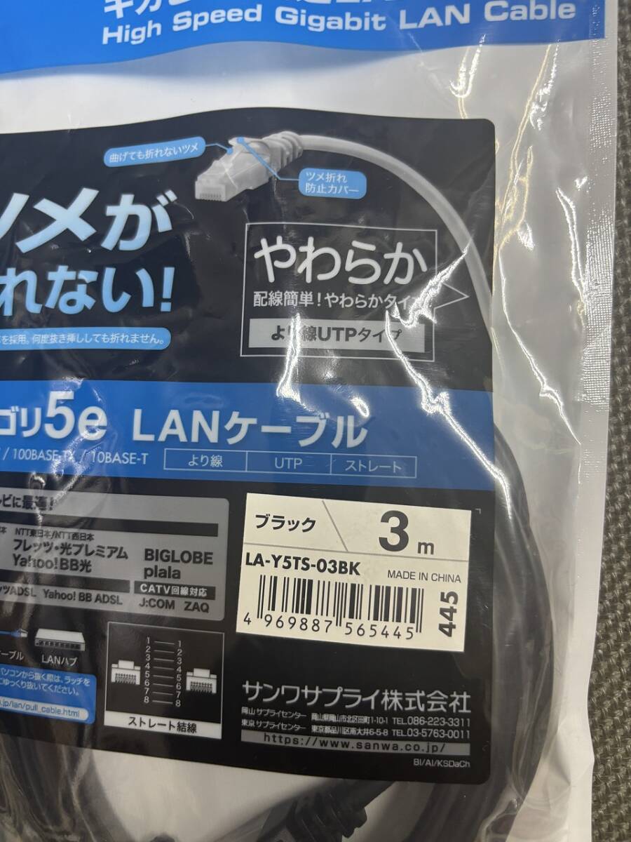柔らかく配線が簡単なカテゴリ5e LANケーブル、