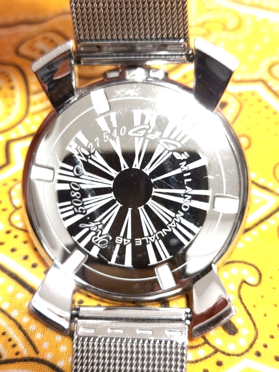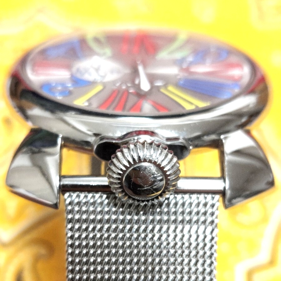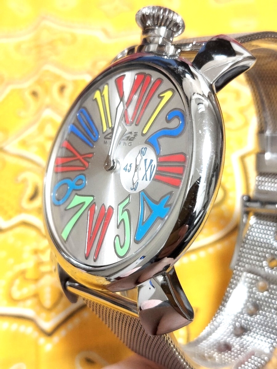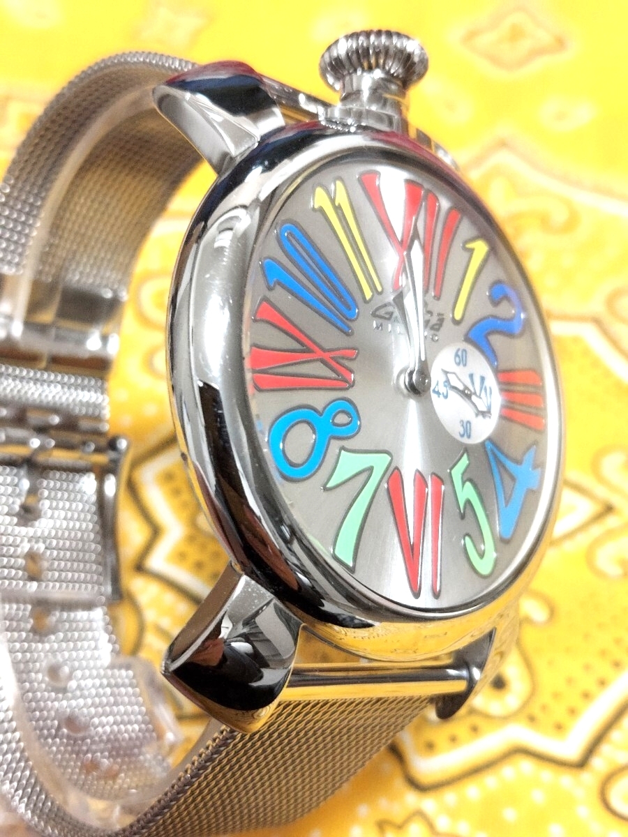 ガガミラノ マニュアーレ46 クォーツ マルチカラー シルバーケース、ホワイト文字盤 稼働品です。