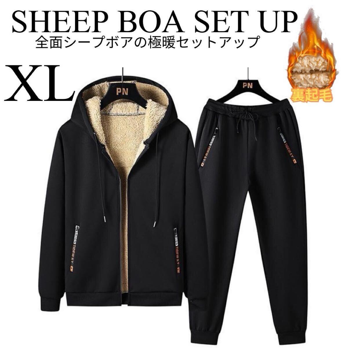 メンズ 裏起毛 裏ボア 上下セット ジャージ スウェット セットアップ ジップアップ パーカー フード付き 防寒 防風