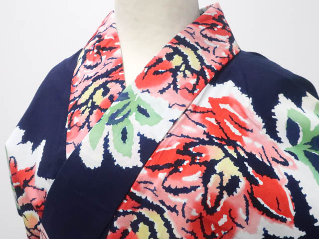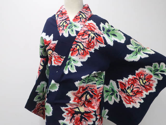 肩当て・居敷当て付きです。リサイクル商品のため、全体所々にしみ汚れがございますが着用可能なお品です。 地色は 紺です。 1枚目の画像が近いお色かと思われます。 素材は綿です。 |