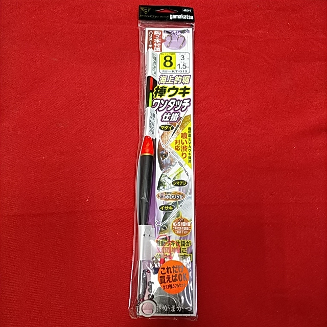 【新品未使用】 がまかつ 海上釣堀 棒ウキ ワンタッチ仕掛 真鯛・シマアジ・イサギ 鈎 ケン付き真鯛 8号 ハリス 3号 ウキ 1.5号 Gamakatsu |
