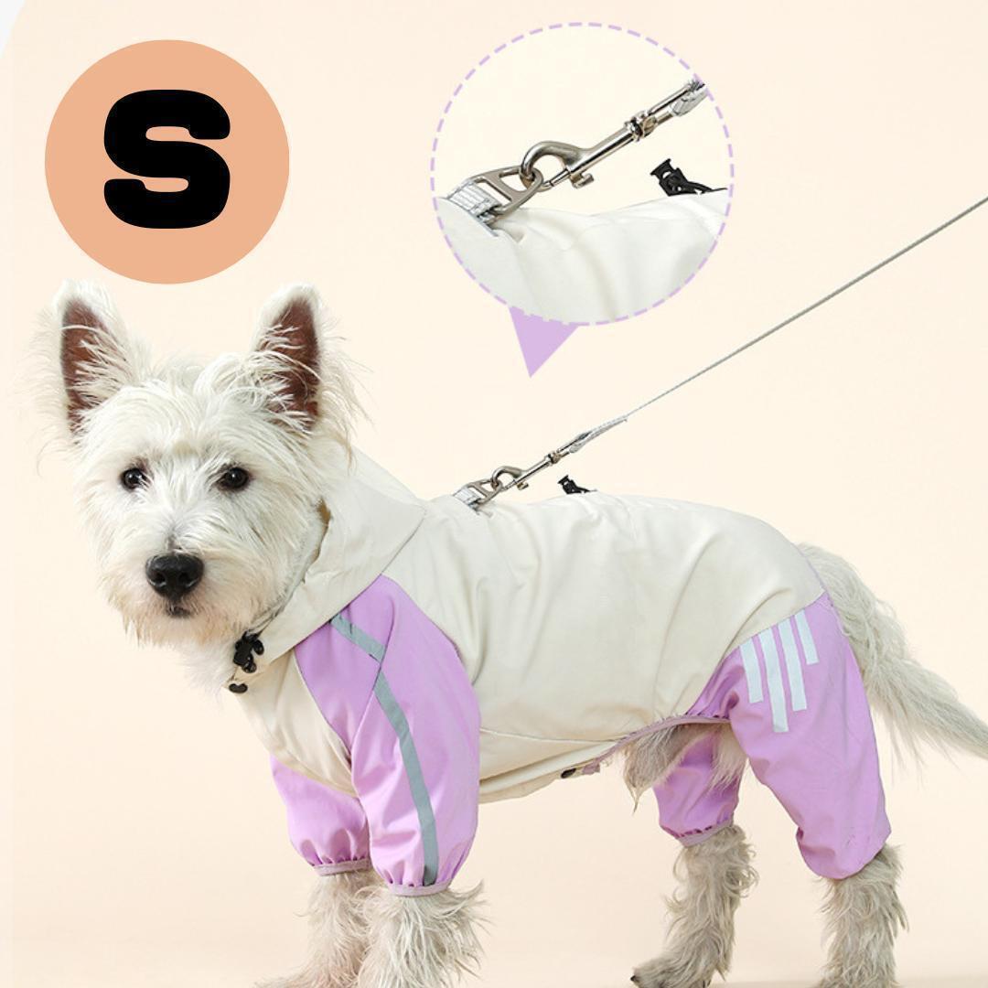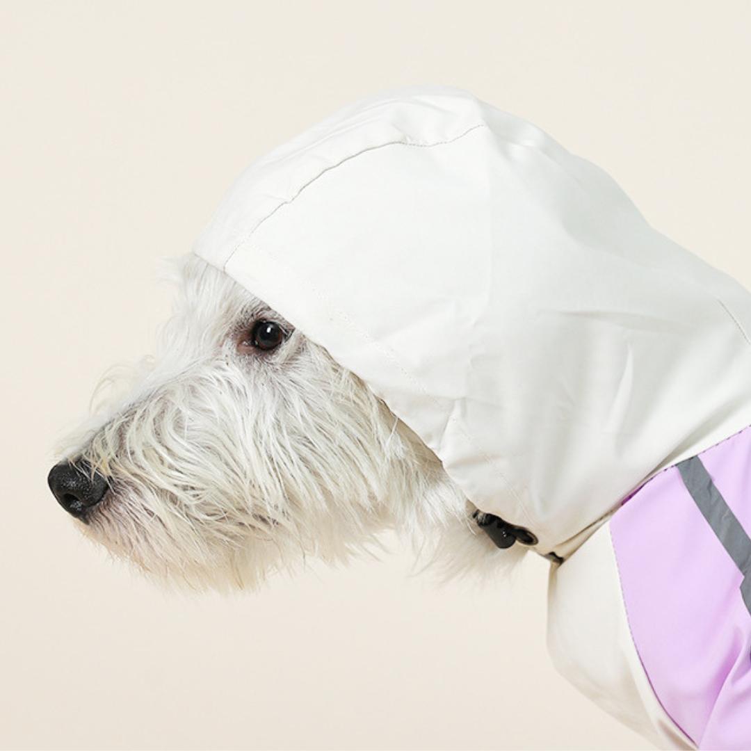 梅雨 雨 シーズンの ワンちゃん用 フード付き レインコート!夜間反射 付きなので夜遅くの散歩も安心。リード部分から水が中に入らないようにカバー付き