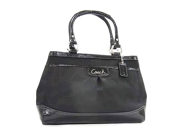 1円 ■美品■ COACH コーチ F21627 シグネチャー キャンバス ハンドバッグ トートバッグ レディース ブラック系 FV3840