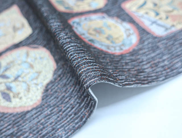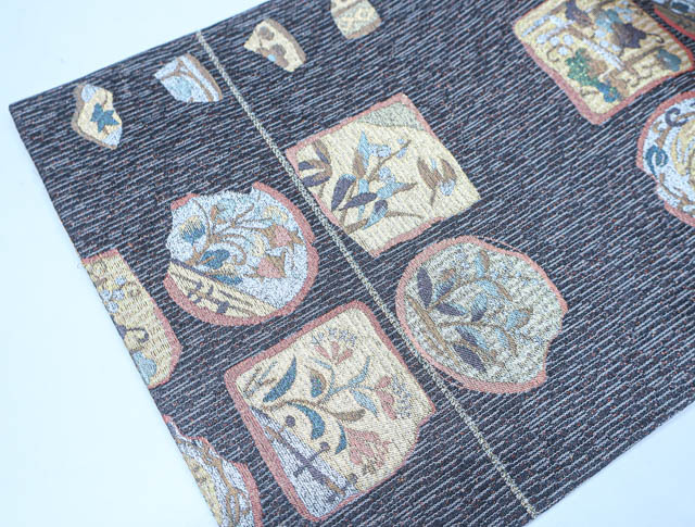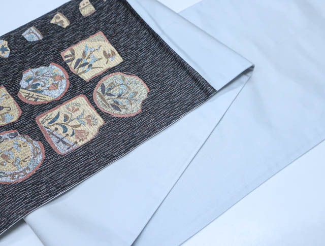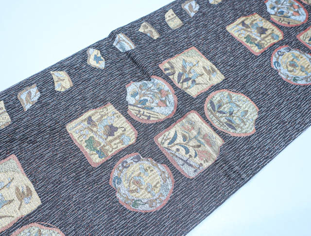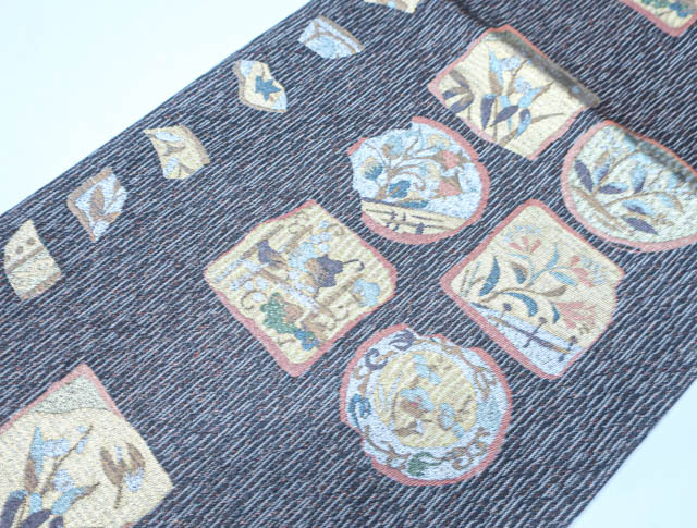 リサイクル商品ではございますが、大変良い状態のお品です。 地色は、ライトグレー×濃い紫色です。 1枚目の画像が近いお色かと思われます。 素材は正絹です。 |