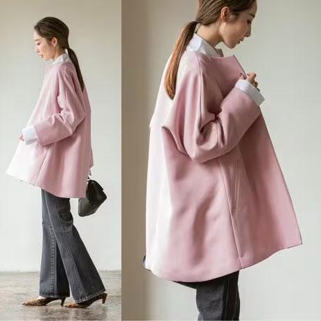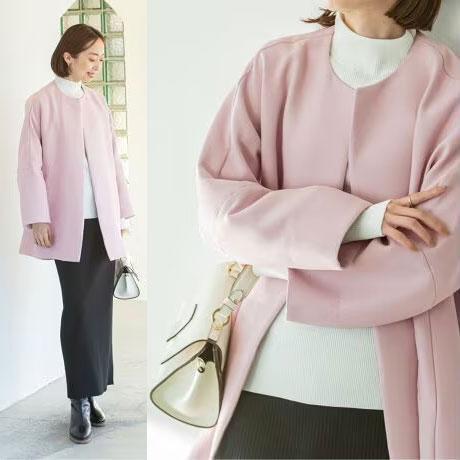 NOBLE ノーブル トリプルクロスクルーネックショートコート ピンク