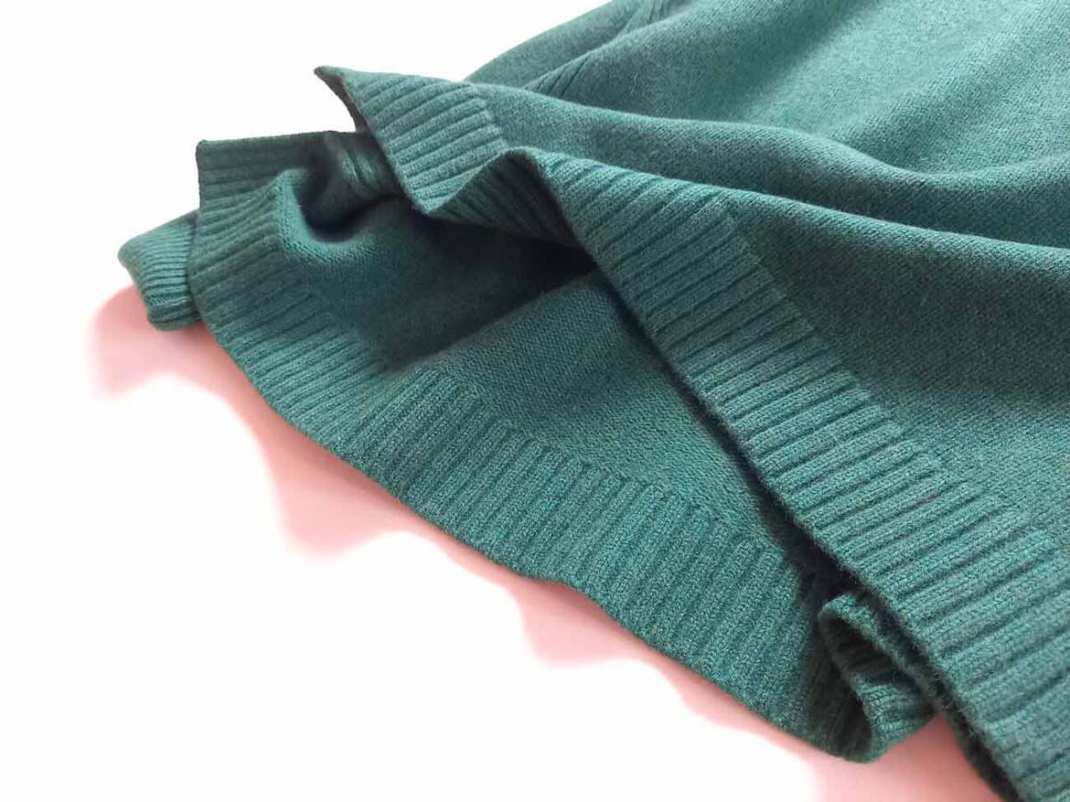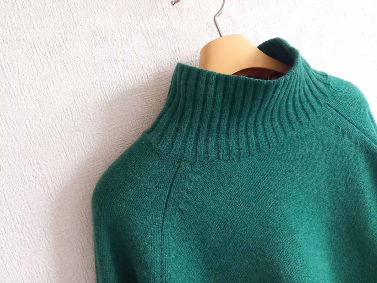 綺麗に立ちあがるハイネック、首に張り付かない余裕のある壺型です。