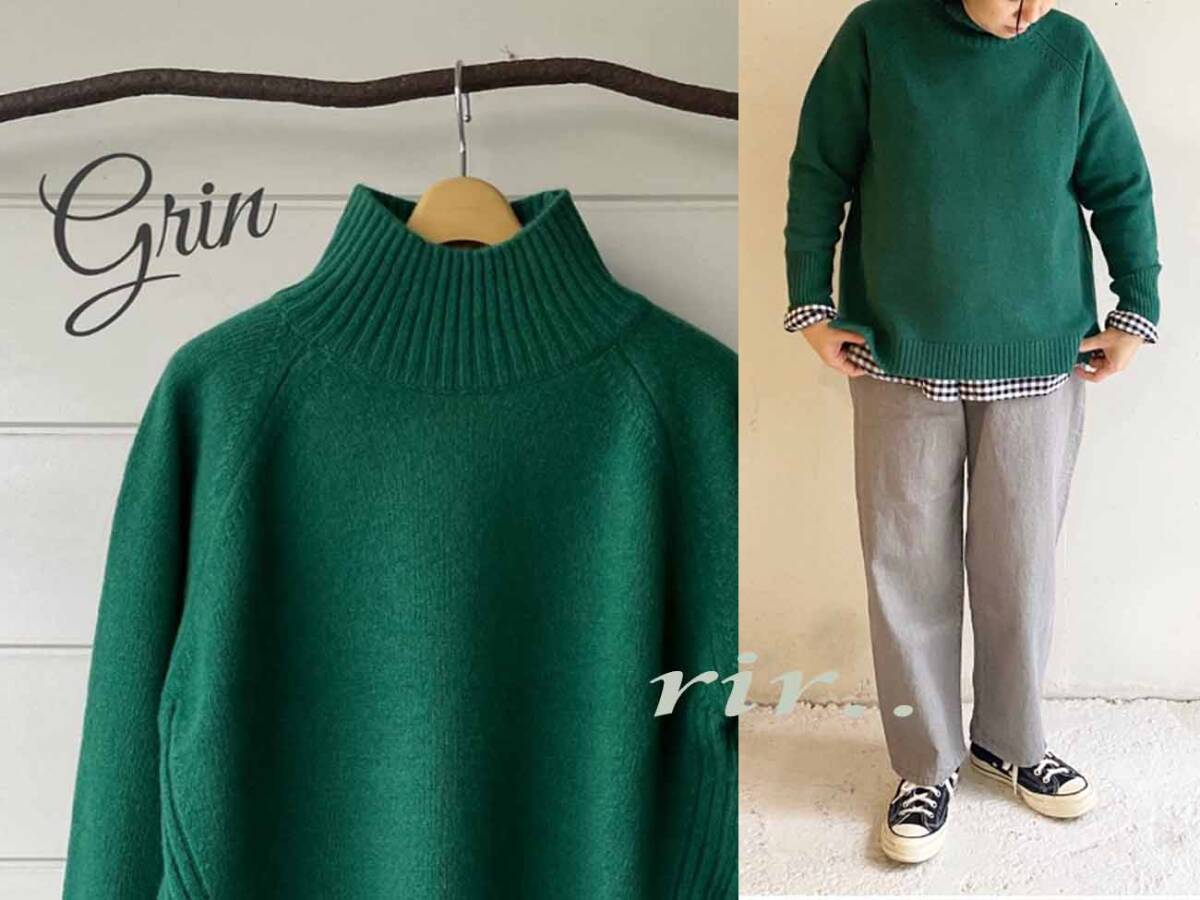 grin/グリン 肉厚あったかメリノウール ハイネックニット 2/グリーン