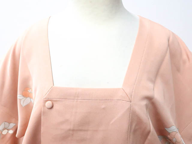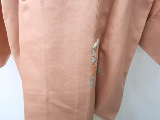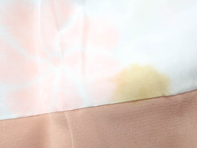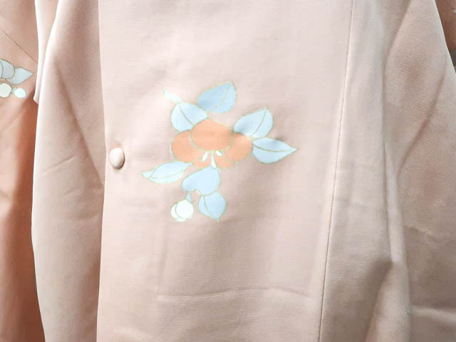 リサイクル商品のため、全体所々にしみ汚れがございますが着用可能なお品です。 地色は 薄ピンクです。 1枚目の画像が近いお色かと思われます。 素材は正絹です。 |