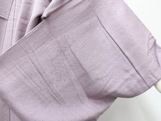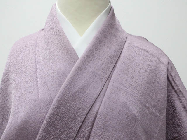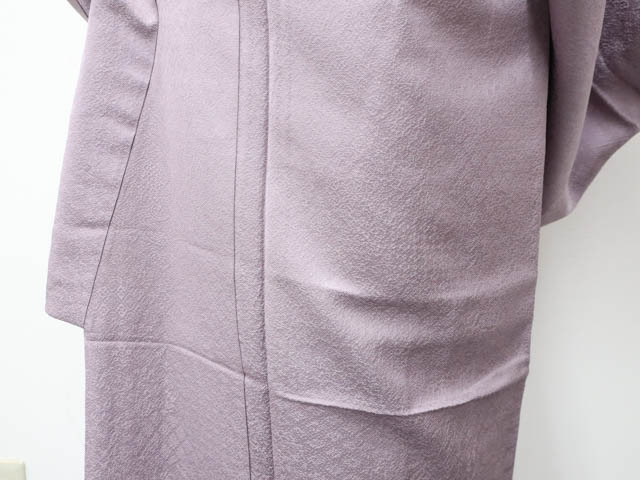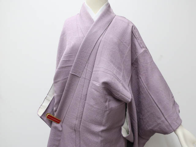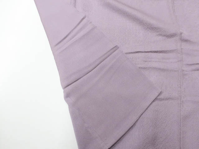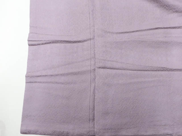 リサイクル商品のため、衿折れ山に薄汚れ、上身頃に薄ヤケがございますが着用可能なお品です。 衽に文字がございます。 地色は、紫色です。 1枚目の画像が近いお色かと思われます。 素材は正絹です。 |