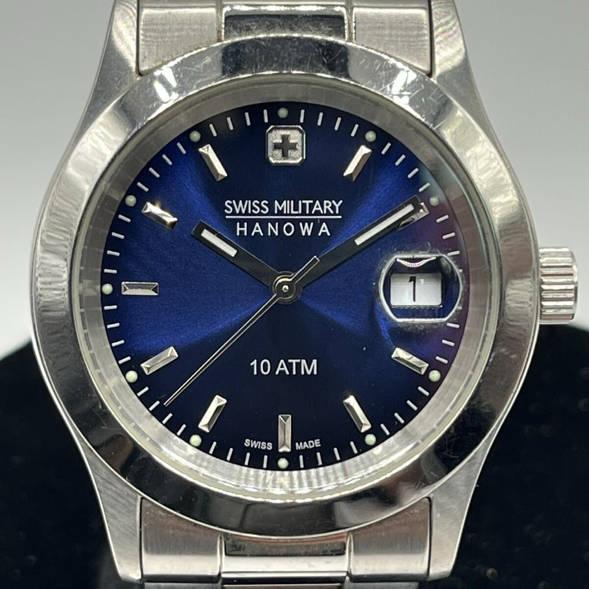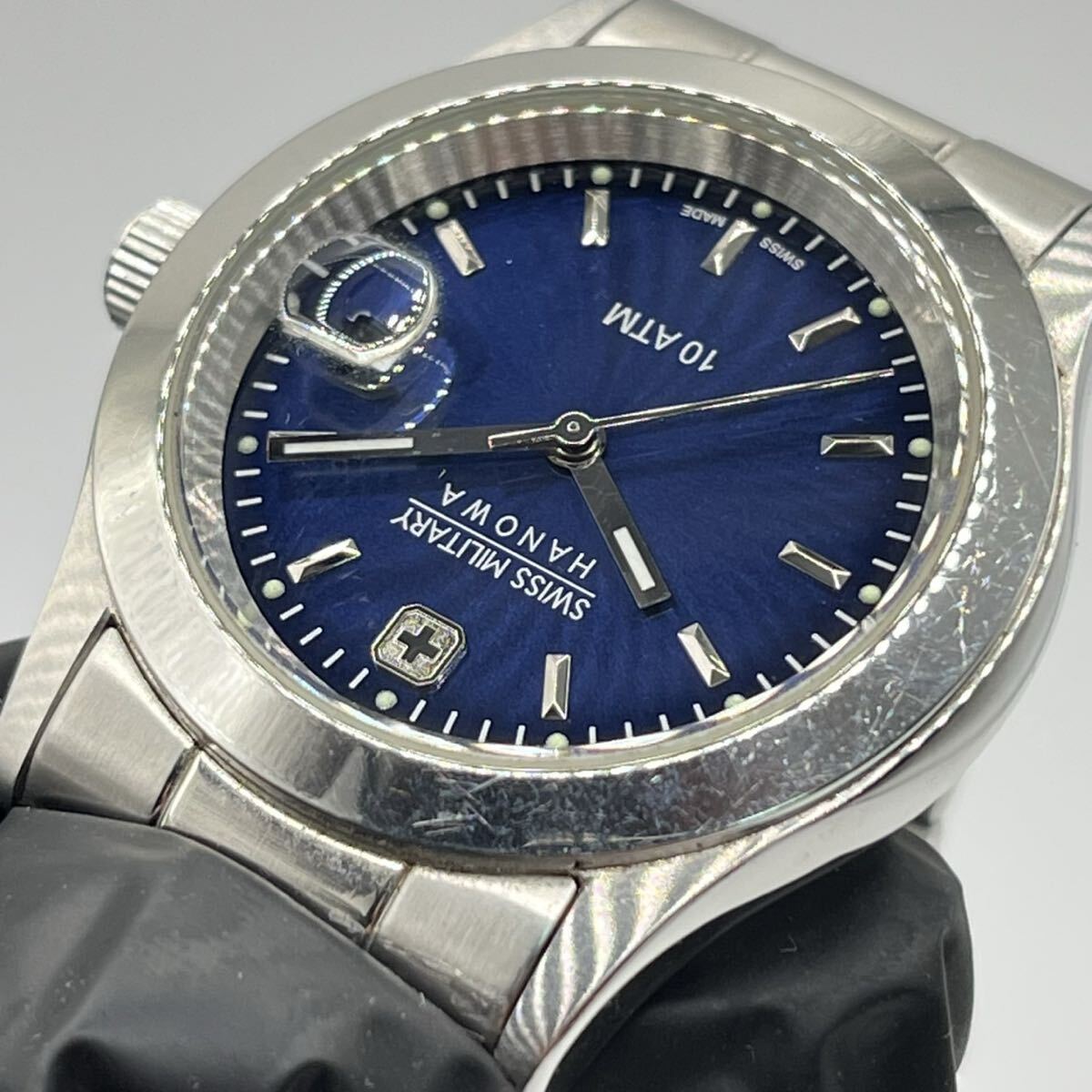 1円~ 腕時計 スイスミリタリー クォーツ SWISS MILITARY ブルー文字盤 アナログ HANOWA 6-5023 SWISS ジャンク 36mm メンズ 腕時計