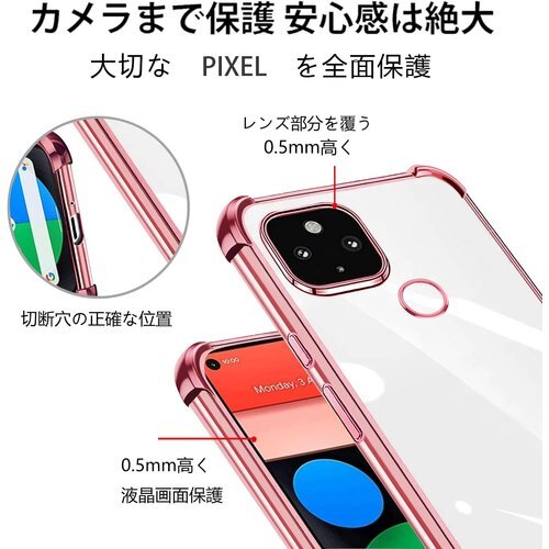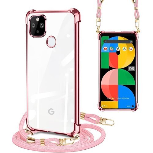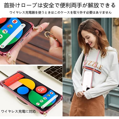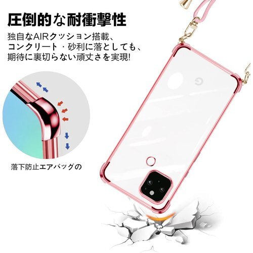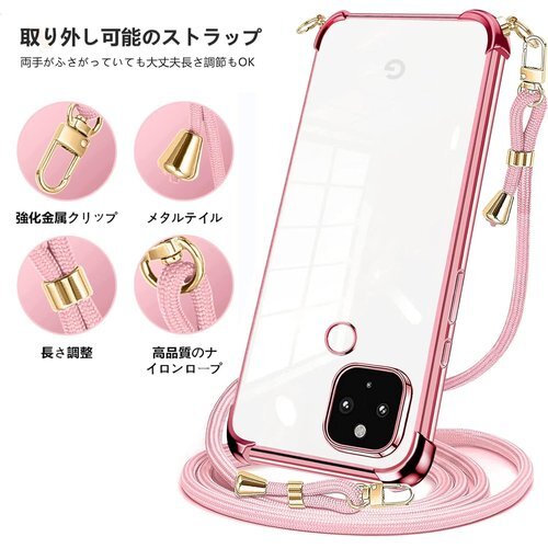 Google Pixel 5a ケース クリア ショル 軽量 紐付き 取り外し可能 携帯ケース ローズゴールド 806