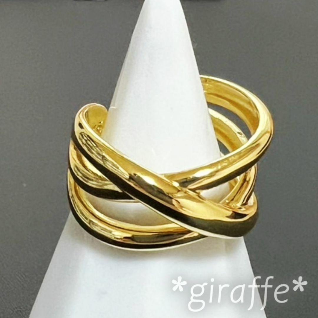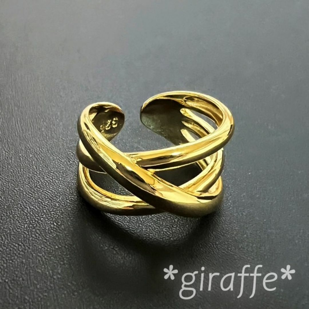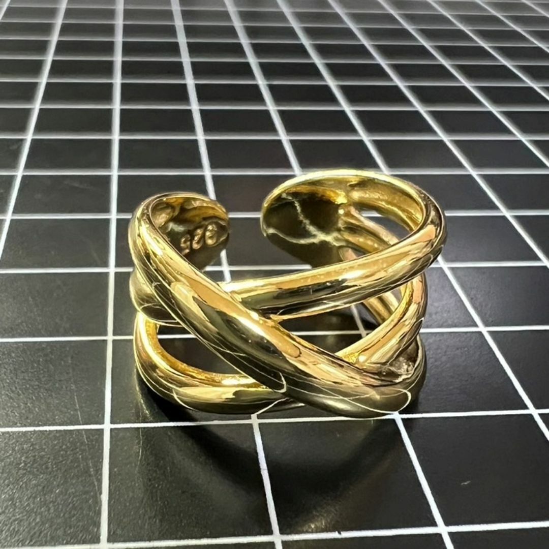 A613 匿名配送 指輪 ゴールド リング s925 交差 多重 フリーサイズ サイズ調節可能 レディース メンズ シンプル