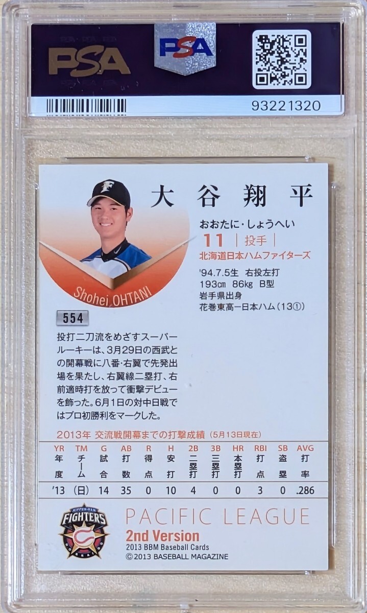 本品は、大谷翔平選手が日ハム時代のルーキカードのPSA鑑定品(PSA10 最高状態)です。