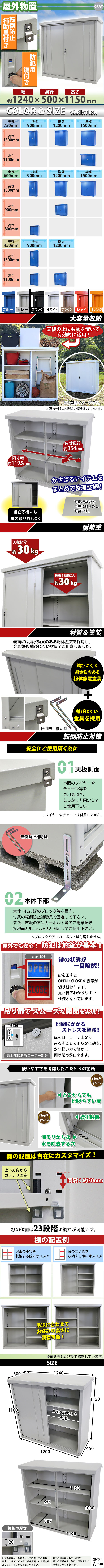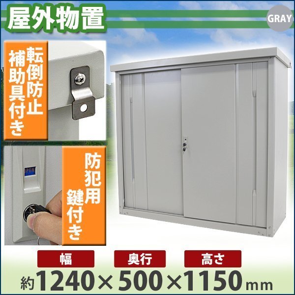 | 商品名 | 送料無料 屋外物置 スチール製 家庭用収納庫 鍵付き 灰 幅約1240mm×奥行約500mm×高さ約1150mm 倉庫 納屋 物置き スチール物置 スチール収納庫 ガレージ 収納 可動棚 吊り戸 吊戸 吊り扉 上吊り 吊引き戸 庭 ガーデン グレー monookishw12d45h11gr |