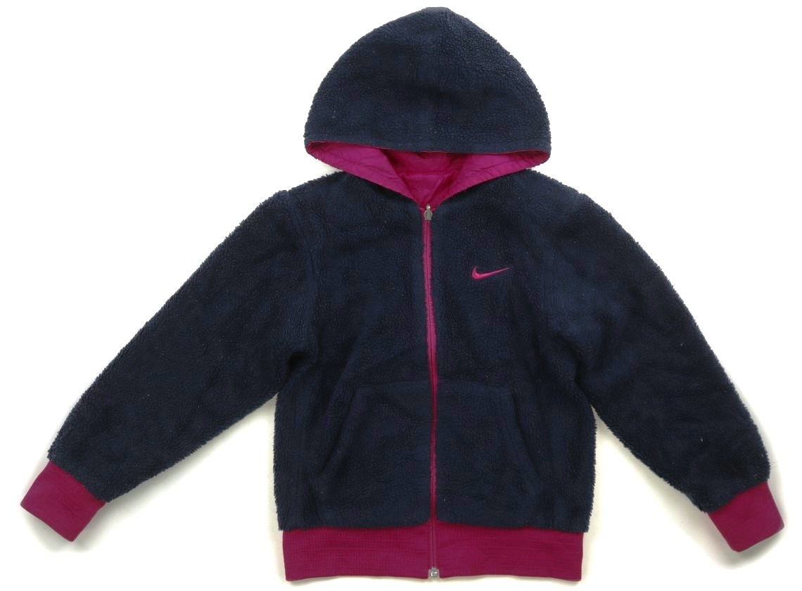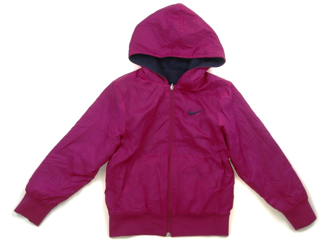 リバーシブル仕様。フードは縫い付けです。ボア側に毛足のごわつき、白い毛羽の付着など使用感あり。マゼンダ側の左ポケット口にノリ汚れあり。袖リブに黒ずみ汚れあり。普段使いにいかがでしょうか。