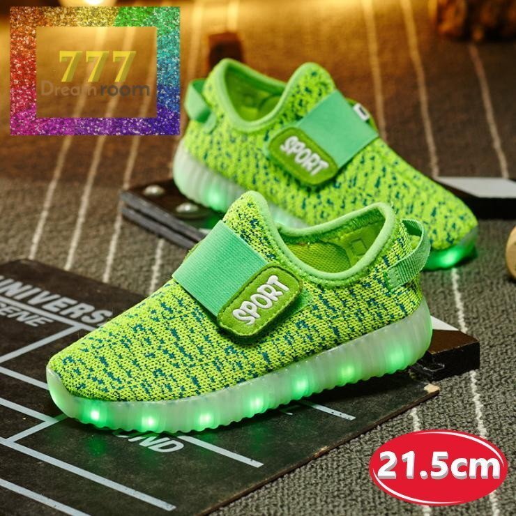 kids 7色に光る☆LED ライトアップ MIXツイードスニーカー 【グリーン 21.5cm】 韓国子供服 キッズ シューズ 子供用 男女