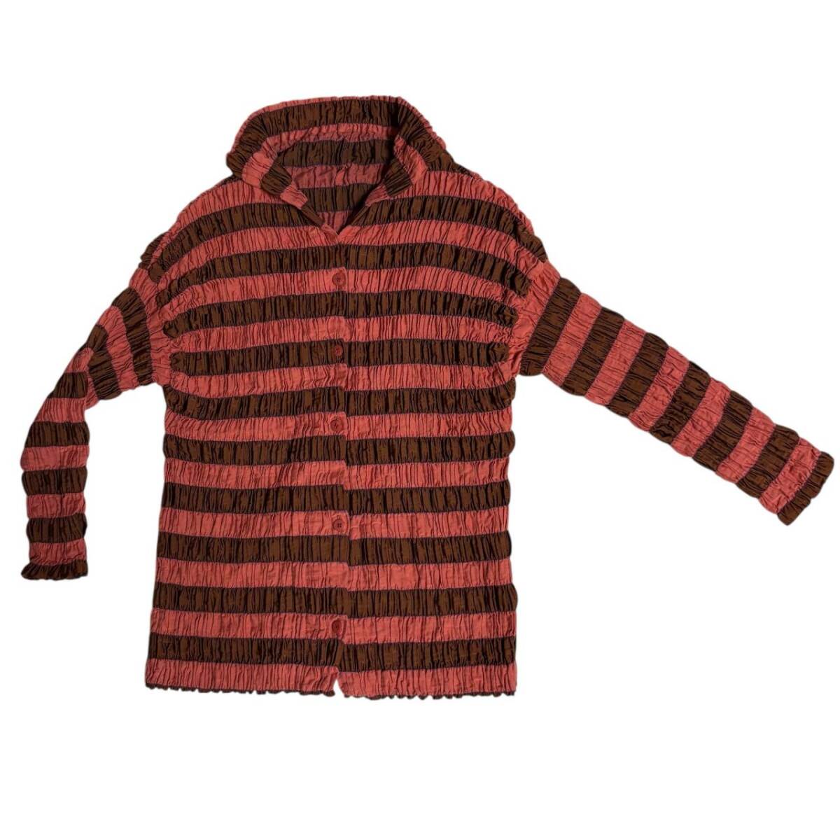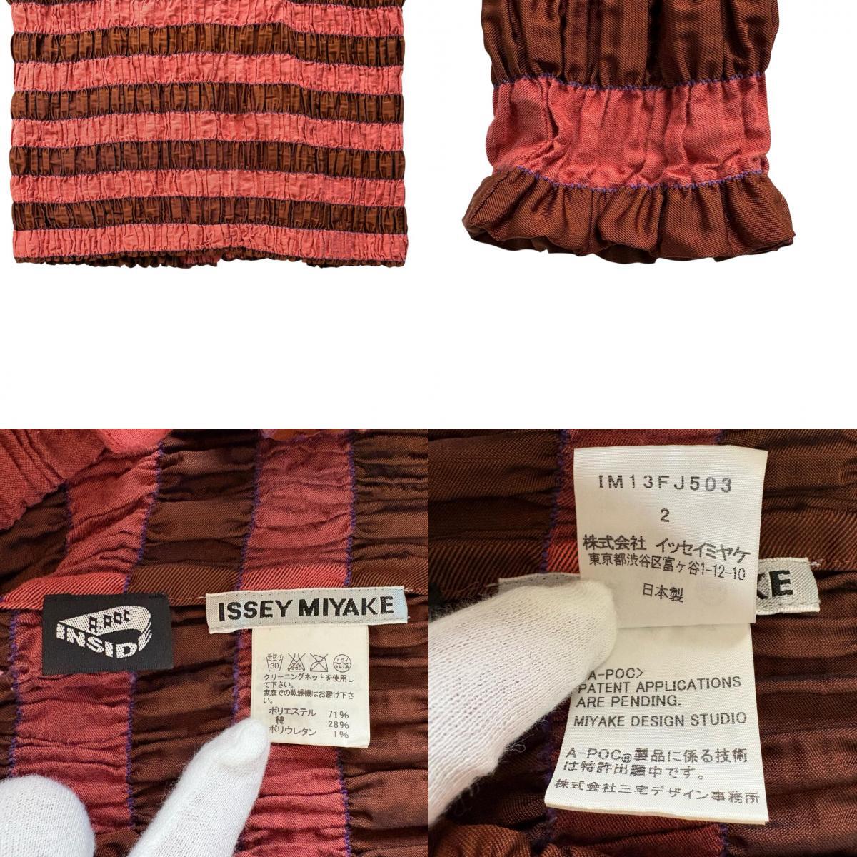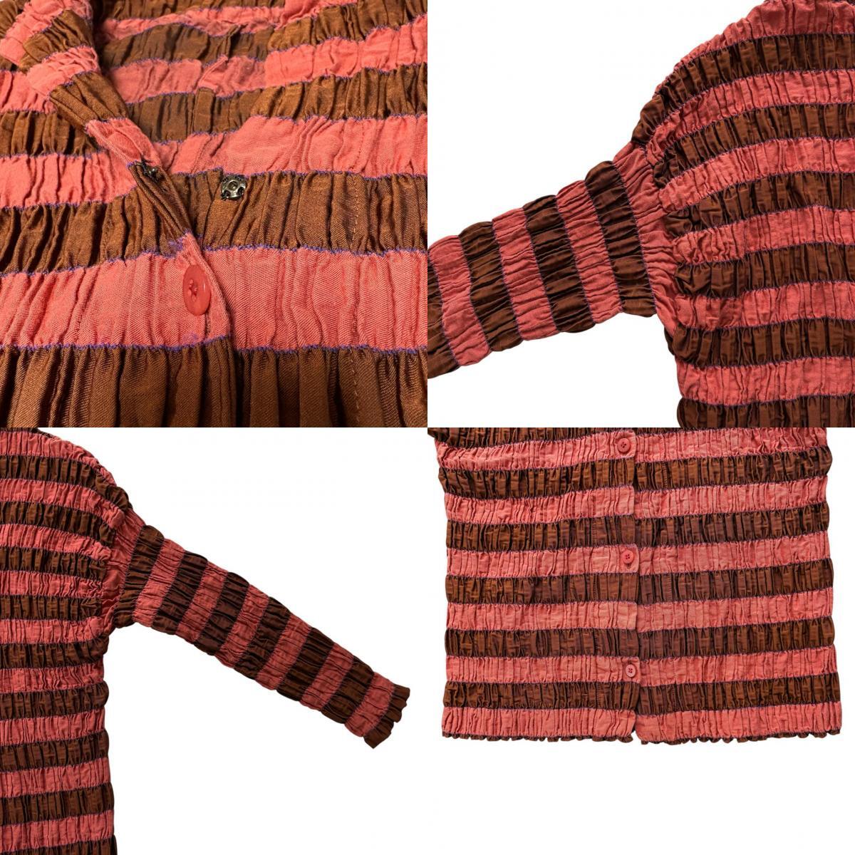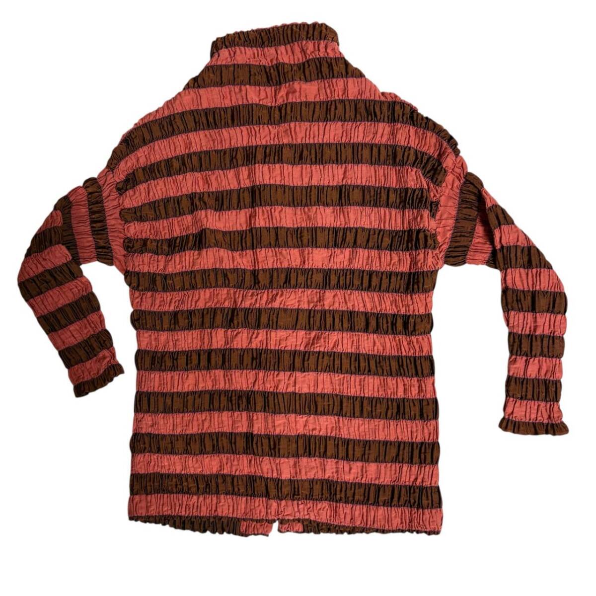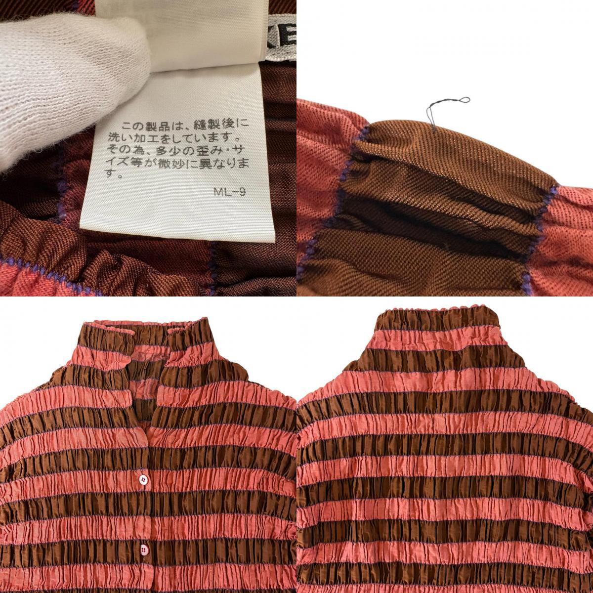 | ISSEY MIYAKE イッセイミヤケ ボーダー 赤×茶 長袖 縦えり ジャケット 赤系 サイズ2 トップス IM13FJ503 |