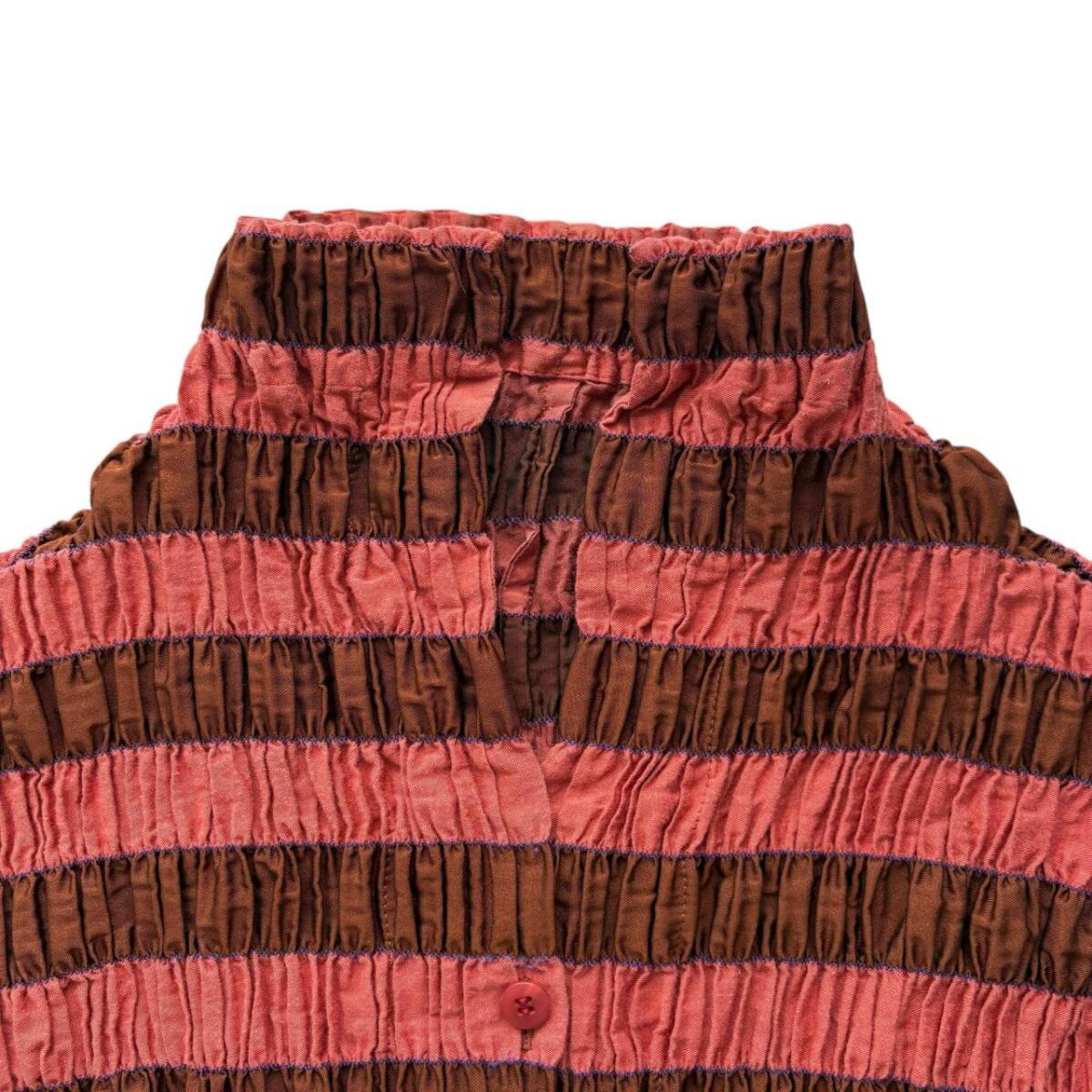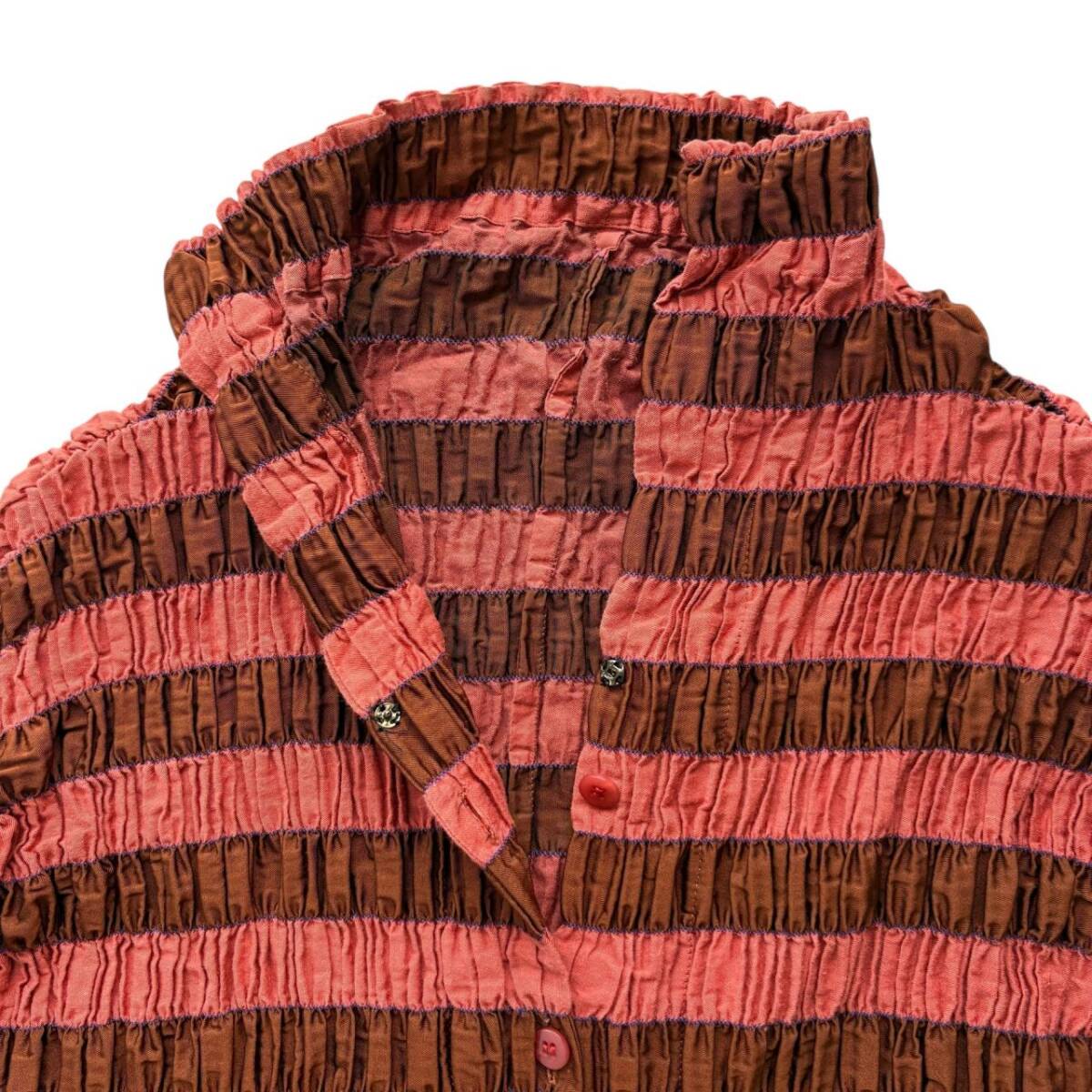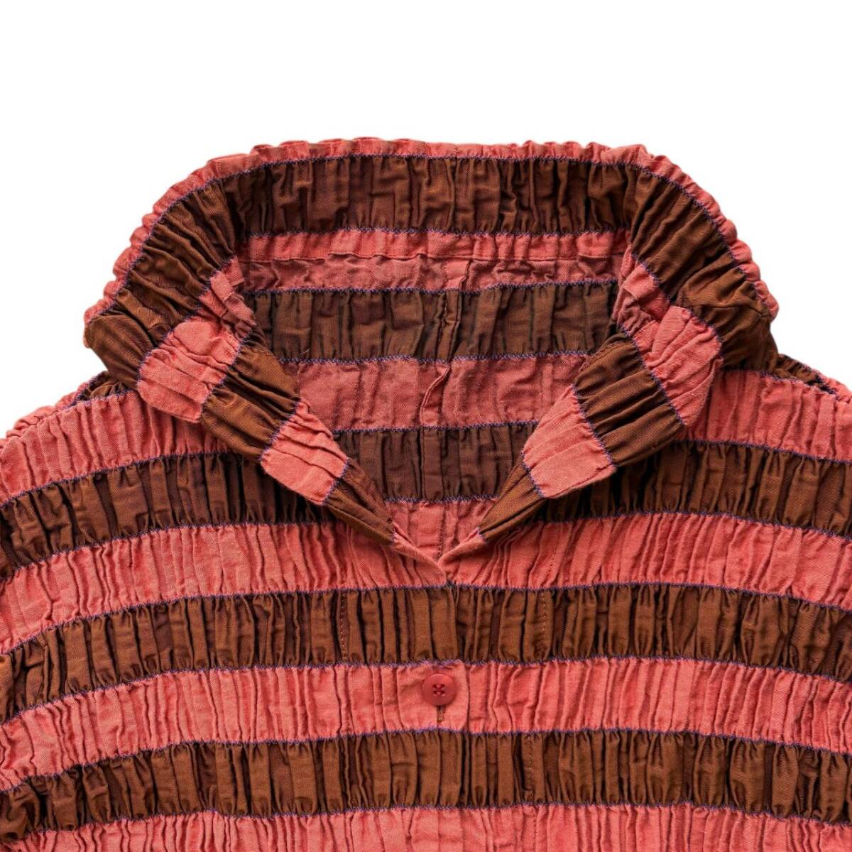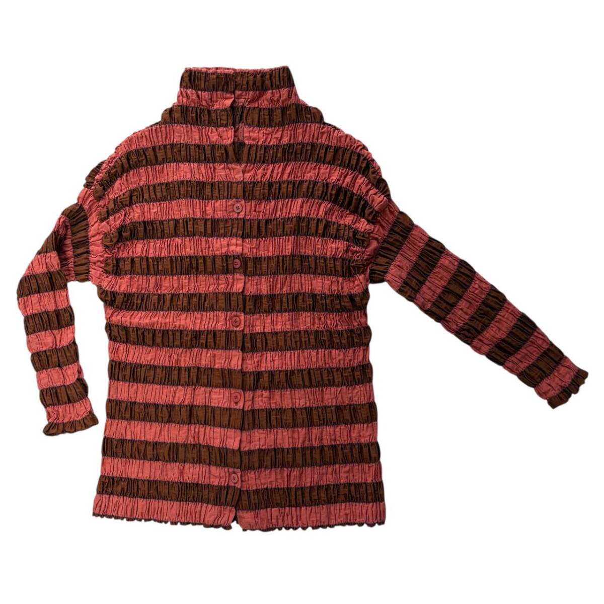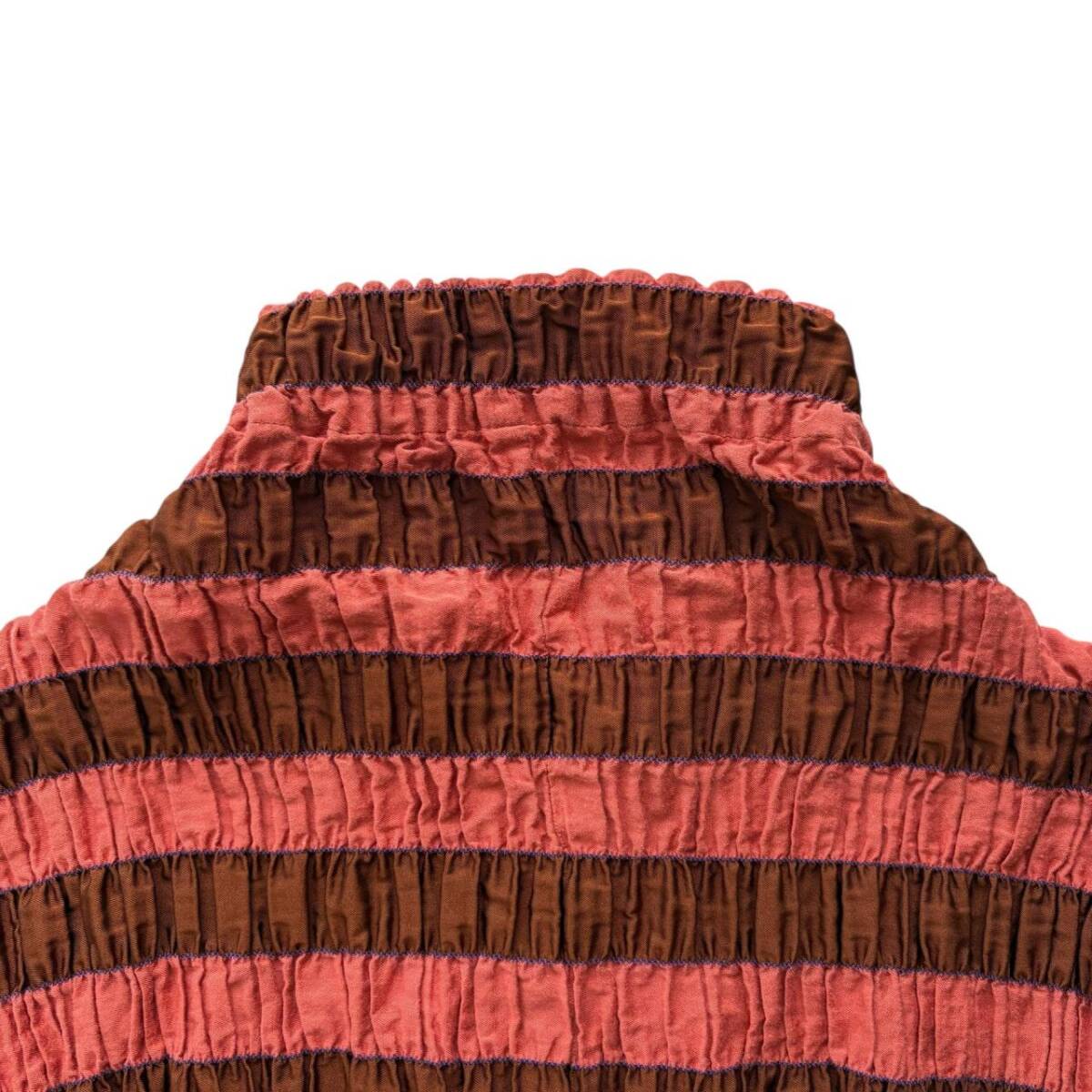 | ISSEY MIYAKE イッセイミヤケ ボーダー 赤×茶 長袖 縦えり ジャケット 赤系 サイズ2 トップス IM13FJ503 |