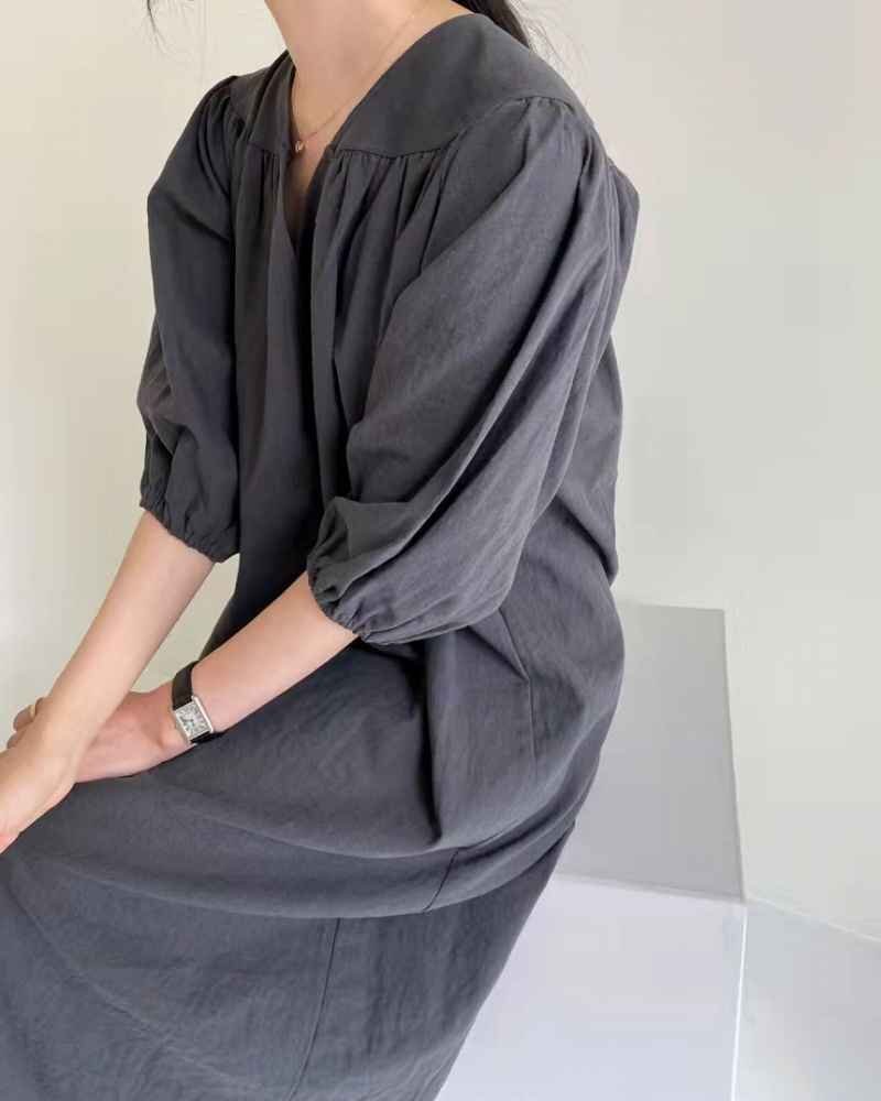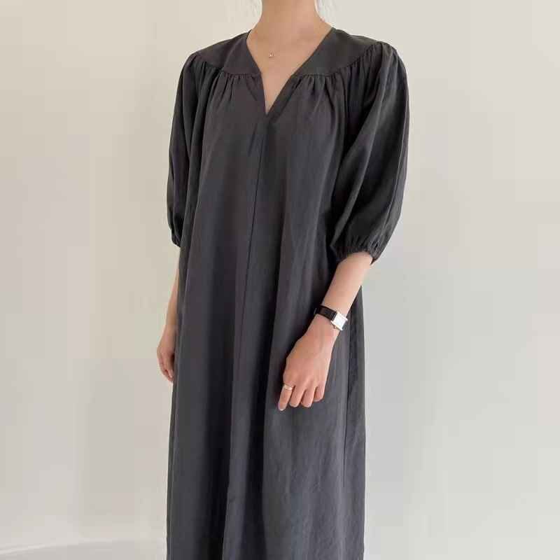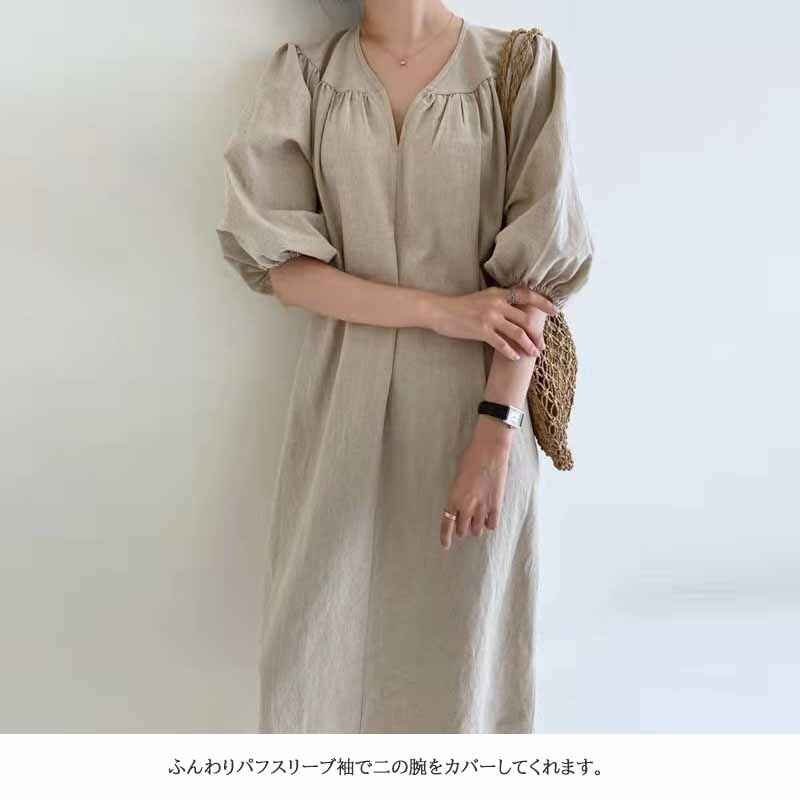 ・ふんわりパフスリーブ袖で二の腕をカバーしてくれます。