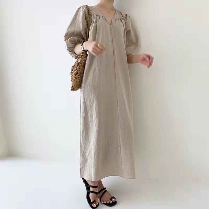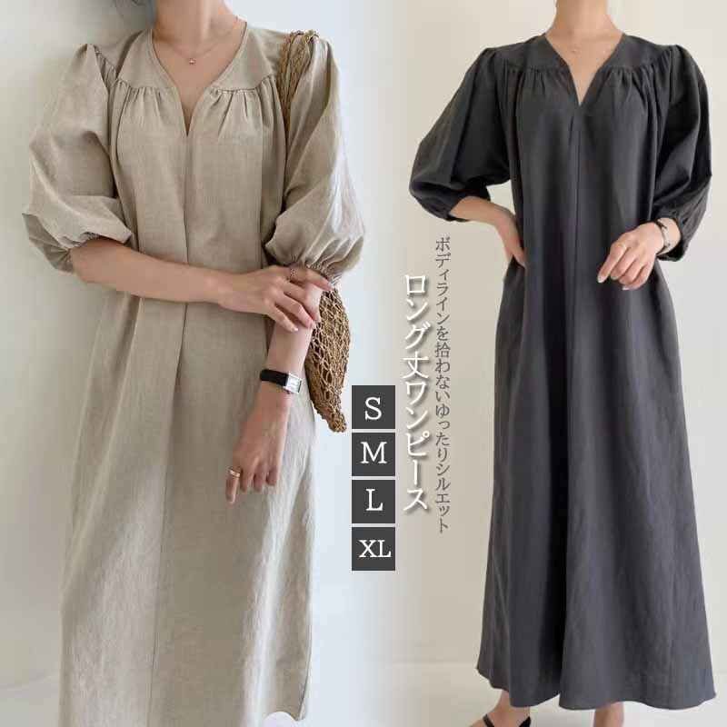 ・ゆったりシルエットのロング丈。ボディラインを拾わず体系カバーできます。