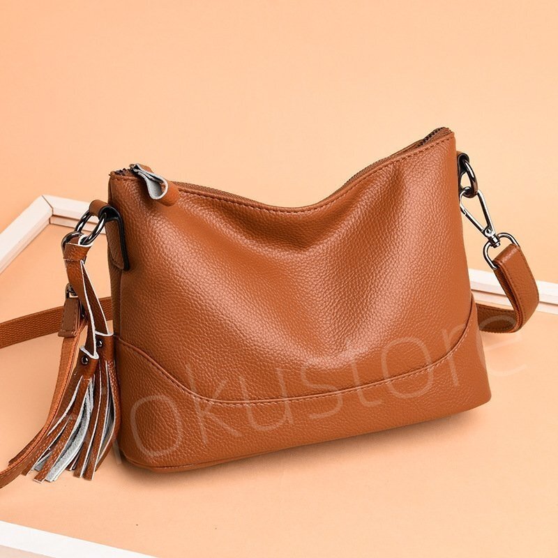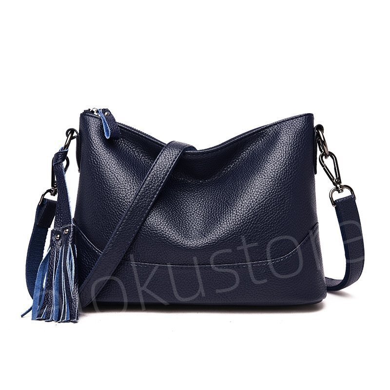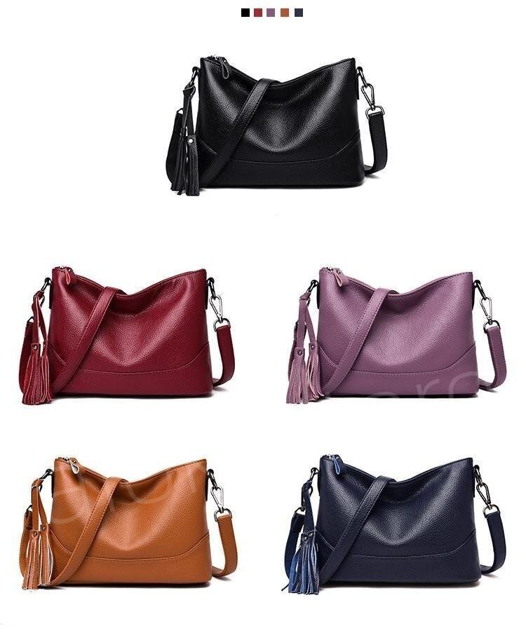新入荷 お色選択可 合成皮革 ブラック 2way ショルダーバッグ タッセル付き ハンドバッグ 斜めがけ ブラック ##B033