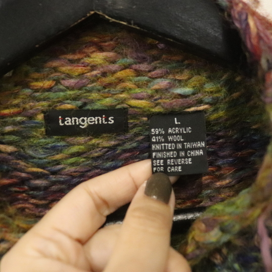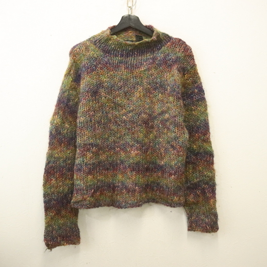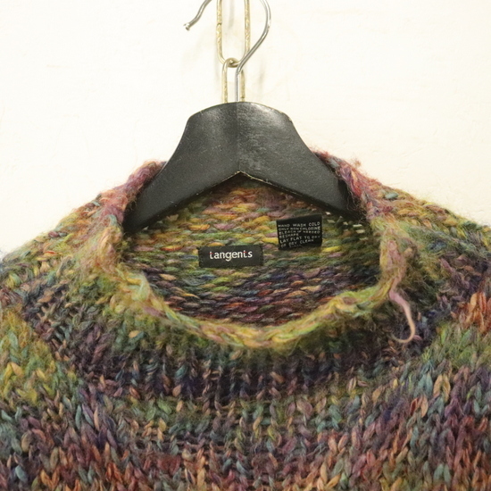 d87 90sビンテージ LANGENNTS ミックスカラー 総柄 ウールニットセーター■1990年代製 表記Lサイズ アンティーク サイケ ヒッピー 80s 70s