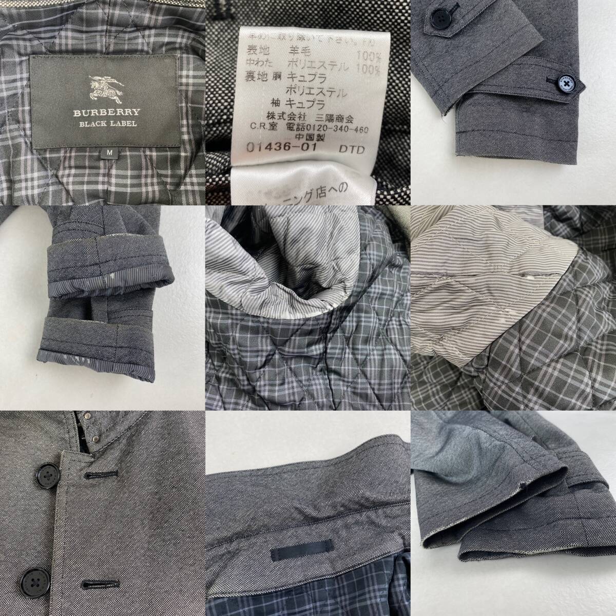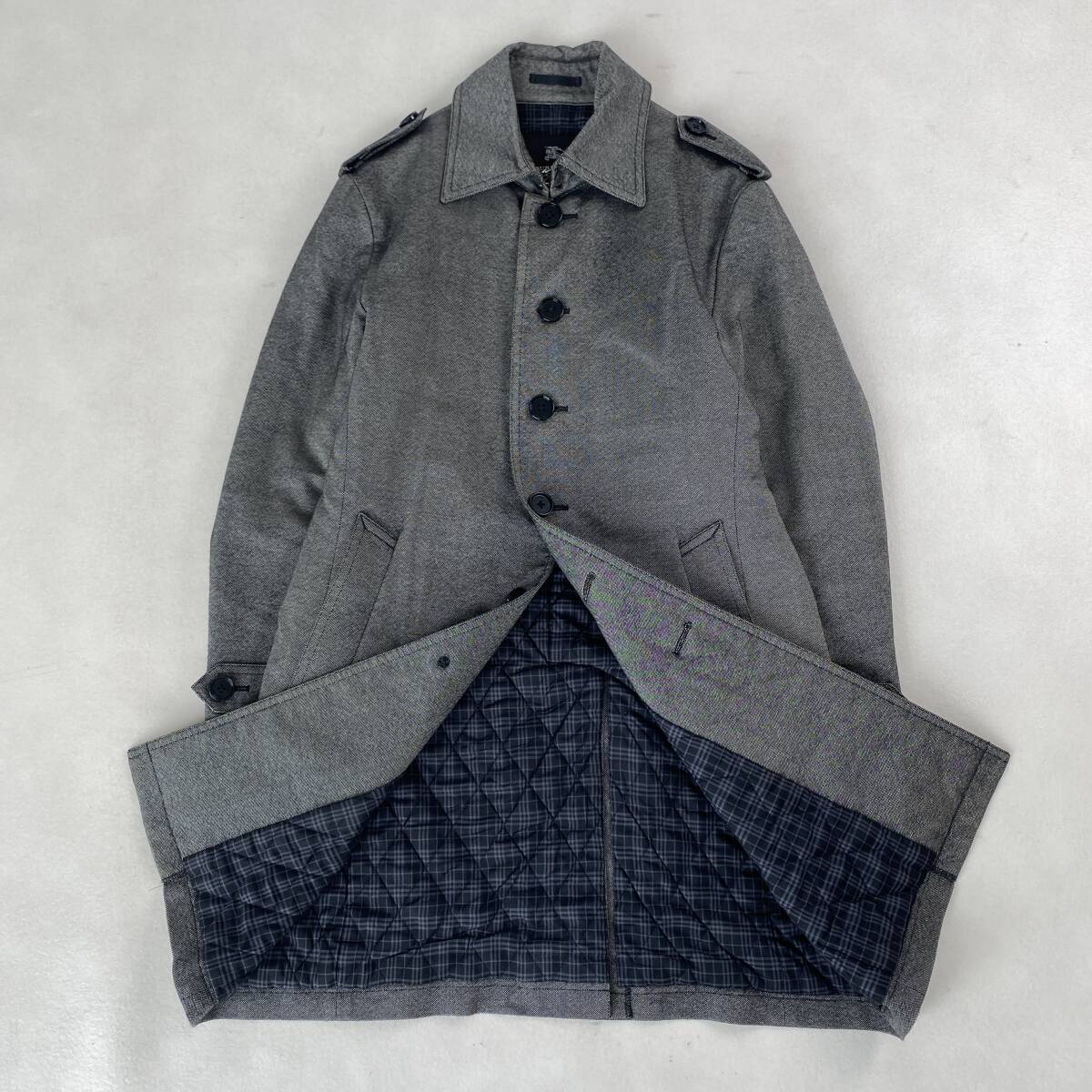 【ポイント】ノバチェック 裏地キルティング 三陽商会 Burberry Black Label グレー M相当