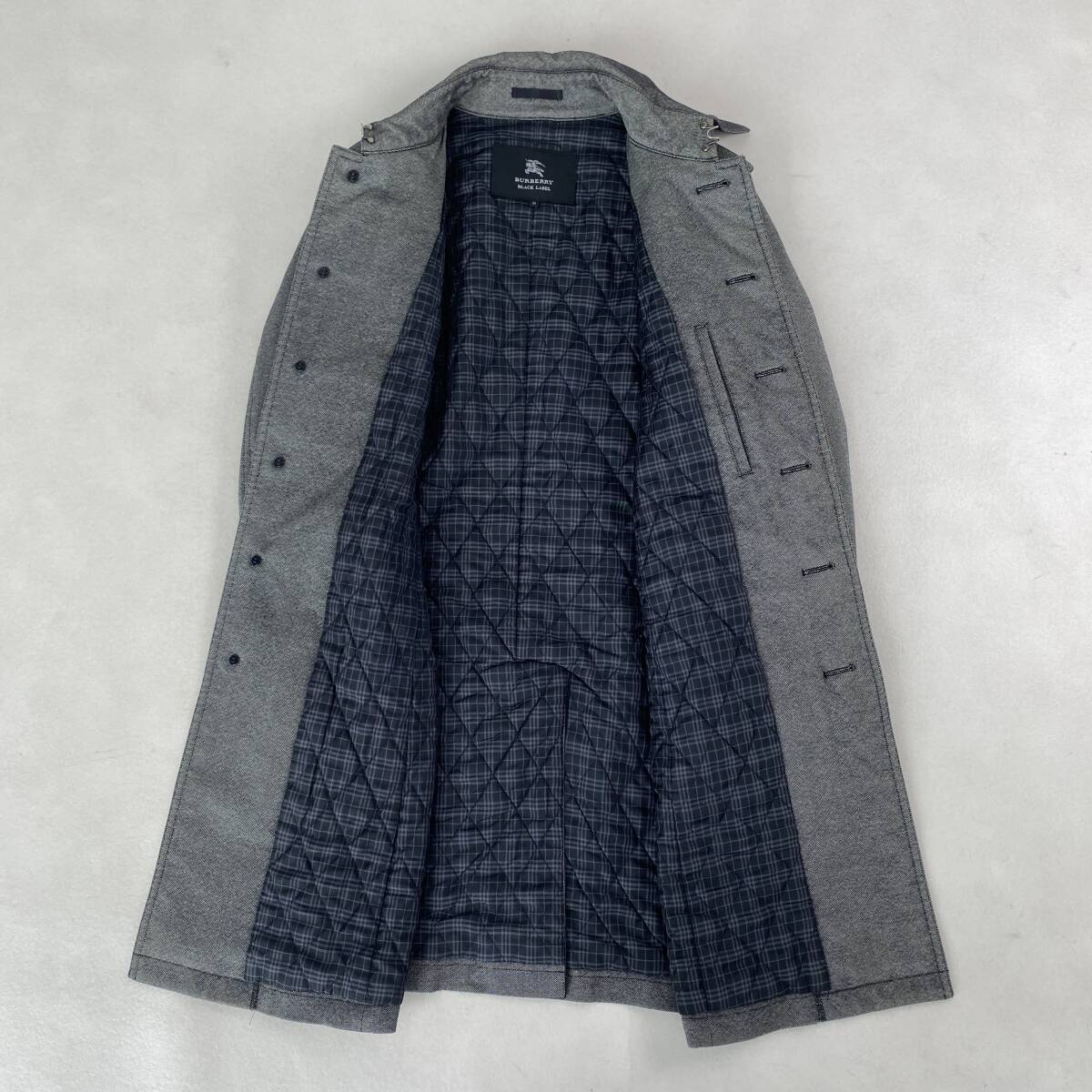 バーバリー ブラックレーベル トレンチコート ノバチェック 裏地キルティング 三陽商会 Burberry Black Label グレー M相当