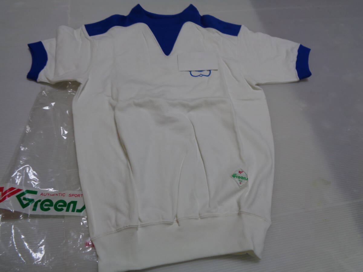 S  白×花紺 GREENS 校章 グリンズ 半袖Tシャツ 体操着 体操服 昭和レトロ 未使用カビシミ!