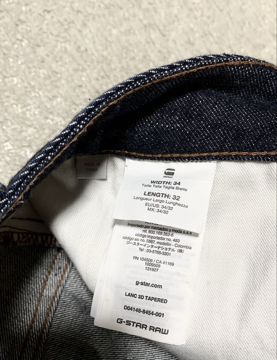 G-STAR RAW(ジースターロウ).3D(立体裁断) テーパードデニム(ワンウォッシュの濃いインディゴ)、サイズ34×32です。