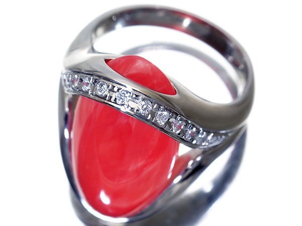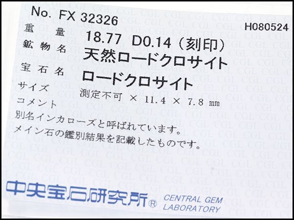 超希少宝石の超大粒極上天然ロードクロサイト18.77ct&ダイヤモンド総計0.14ctを素敵に宝飾した、超高級Pt900リングを1円から特別大放出致します!