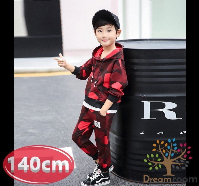 1スタ☆【140cm】ニュアンススター セットアップ レッド パーカー スエット 子供服 女の子 男の子 ルームウェアー 韓国子供服