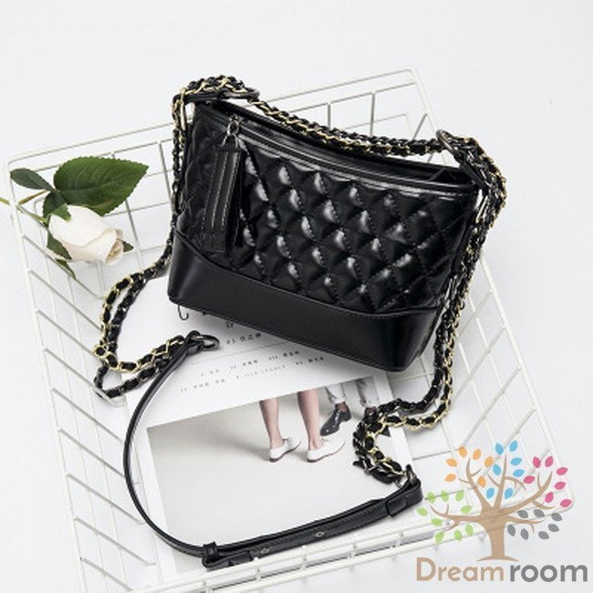 1スタ☆キルティングチェーン ショルダーBAG 【ブラック】革 レザー ハンドバッグ 海外セレブ K-078-2