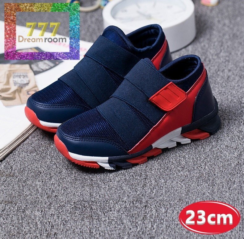 kids メッシュ素材 クロスベルト スニーカー 【ネイビー 23cm】 韓国子供服 キッズ シューズ 子供用 男女