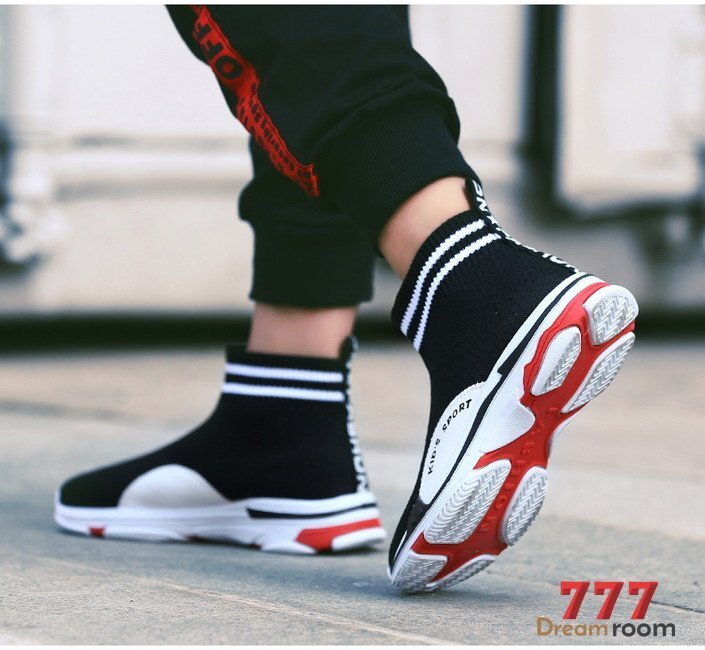 kids 夏用 ハイカット スニーカー 【ブラック×ホワイト 23cm】 韓国子供服 キッズ シューズ ニットスニーカー 子供用 男女
