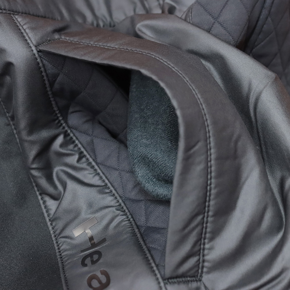 キルト風のニットジャガード素材と、軽くて暖かい裏ボア素材を組み合わせた切替デザインが特徴のハイブリッドパンツ。部分的にマイクロタフタを使用することで、見た目に変化を持たせながら機能性も高めています。しなやかなジャージ素材ならではの動きやすさに加え、しっかりとした保温性で寒い季節のラウンドを快適にサポートします。