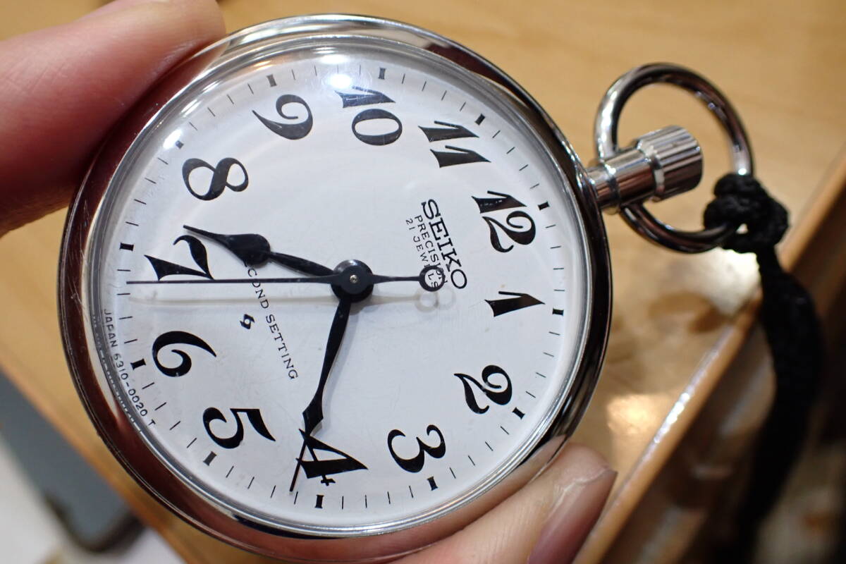 SEIKO/セイコー 6310-0010 鉄道時計 セコンドセッティング アンティーク手巻き懐中時計です。 貴重なセイコーの鉄道時計です。 ケースに細かい傷ありますが、あまり使われていないようです。 プラ風防に小傷あります。 文字盤は綺麗です。 ほか写真でご確認ください。 動かないようです。 オーバーホール前提でジャンクでお願いします。 ケース径:約50mm !オークション終了後、24時間以内に「お取引を始める」ボタンをクリックして、必ず取引をスタートして下さい。 取引のスタートが無ければ、削除させていただきます。 必ず厳守してください! 「新規ID」「直近で悪い評価が多い方」のトラブル(イタズラなど)が非常に多いです。 当方が、お取引に支障があると判断したID(特に新規ID)は削除します。 ●ジャンク品と記載の物の商品到着時の動作保証はありません。 ●付属品等は、写真に写っているものですべてです。 | ||||