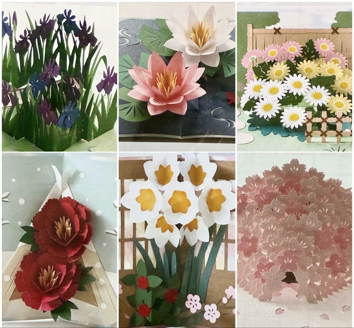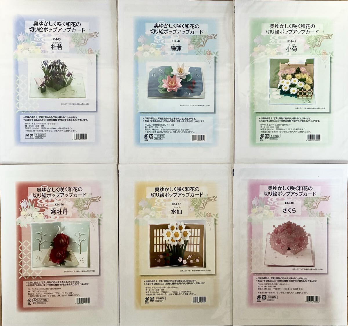 新品キット【全6種】奥ゆかしく咲く和花の切り絵ポップアップカード 手芸キット ハンドメイド 小山 日本製 切り絵 和小物 花 プレゼント
