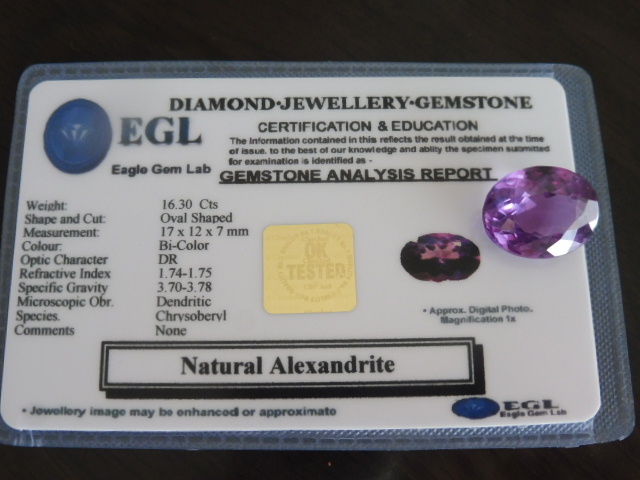 地色キレイ!鑑別書付き 超大粒 アレキサンドライト ルース 約16.30ct
